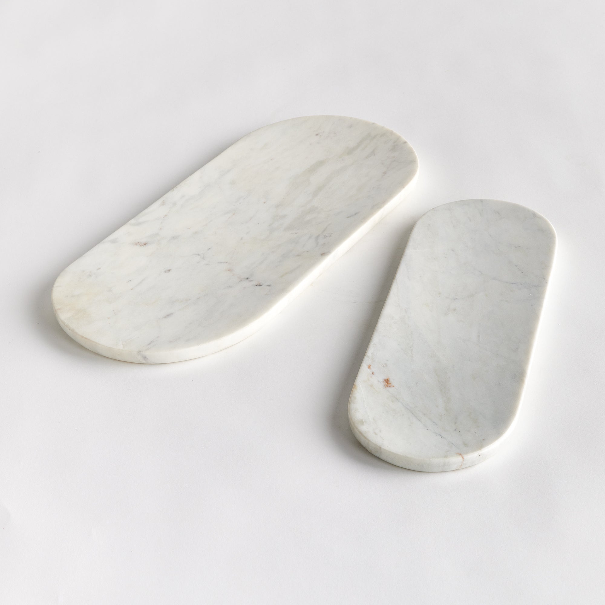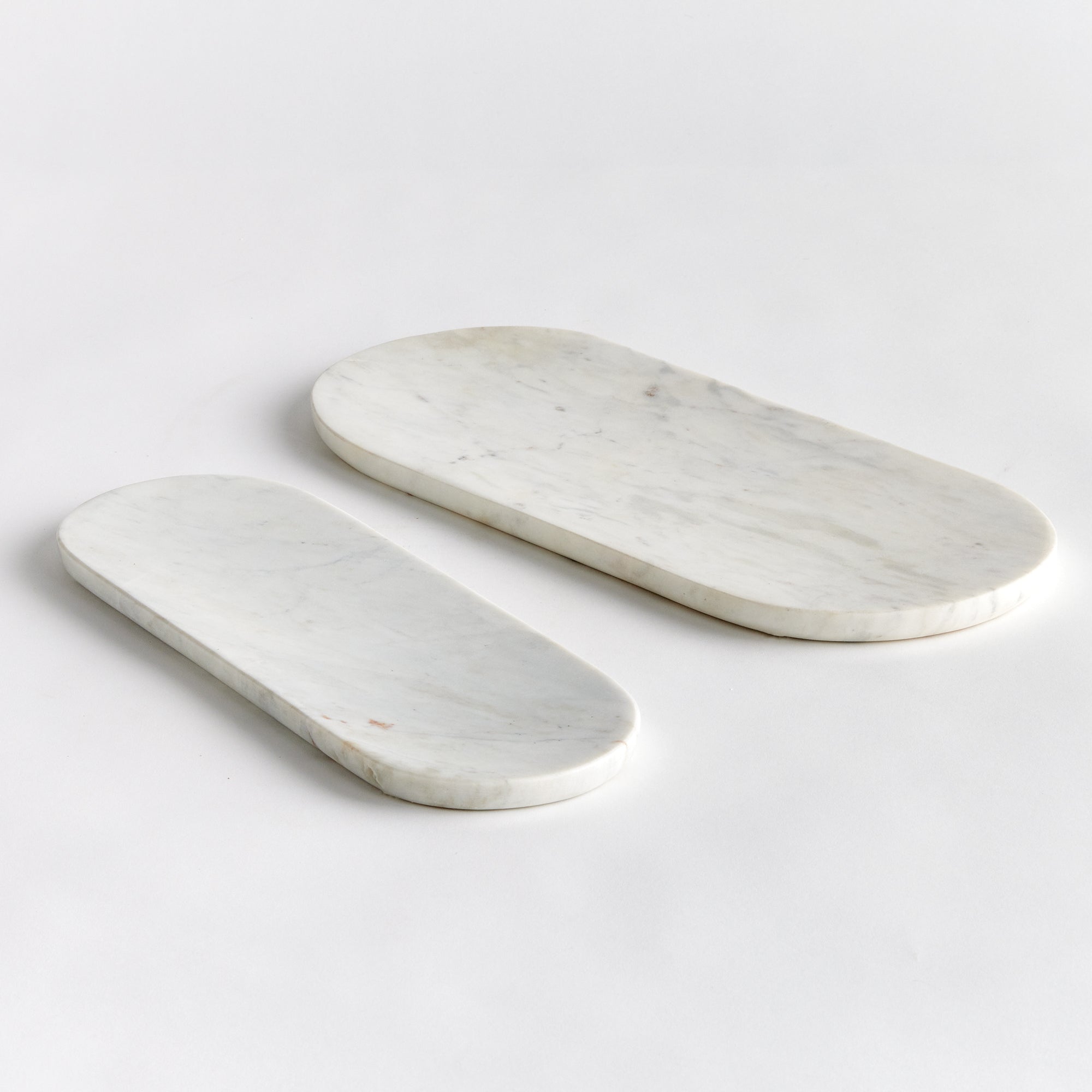 Sleek and simple, this set of oval marble trays are a great addition to any kitchen. An elegant way to serve guests a delicious array of cheese, crackers & fruit.