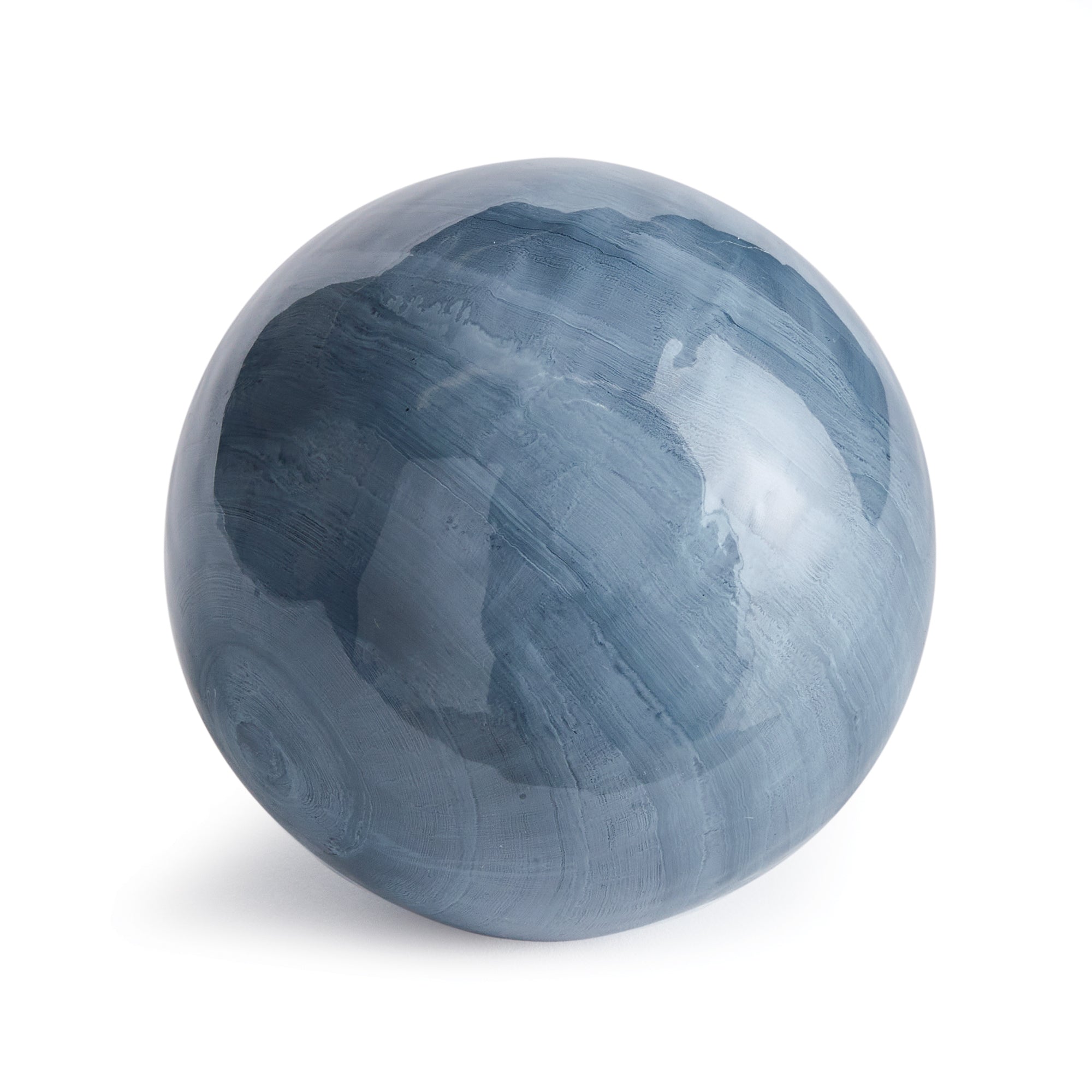 In a clever use of enameled iron, this lightweight orb is painted by hand. A refined, horizontal swirl design, each one prettier than the next. With layers of delicate strokes in a coastal-inspired blue gray palette, it is modern artistry defined.