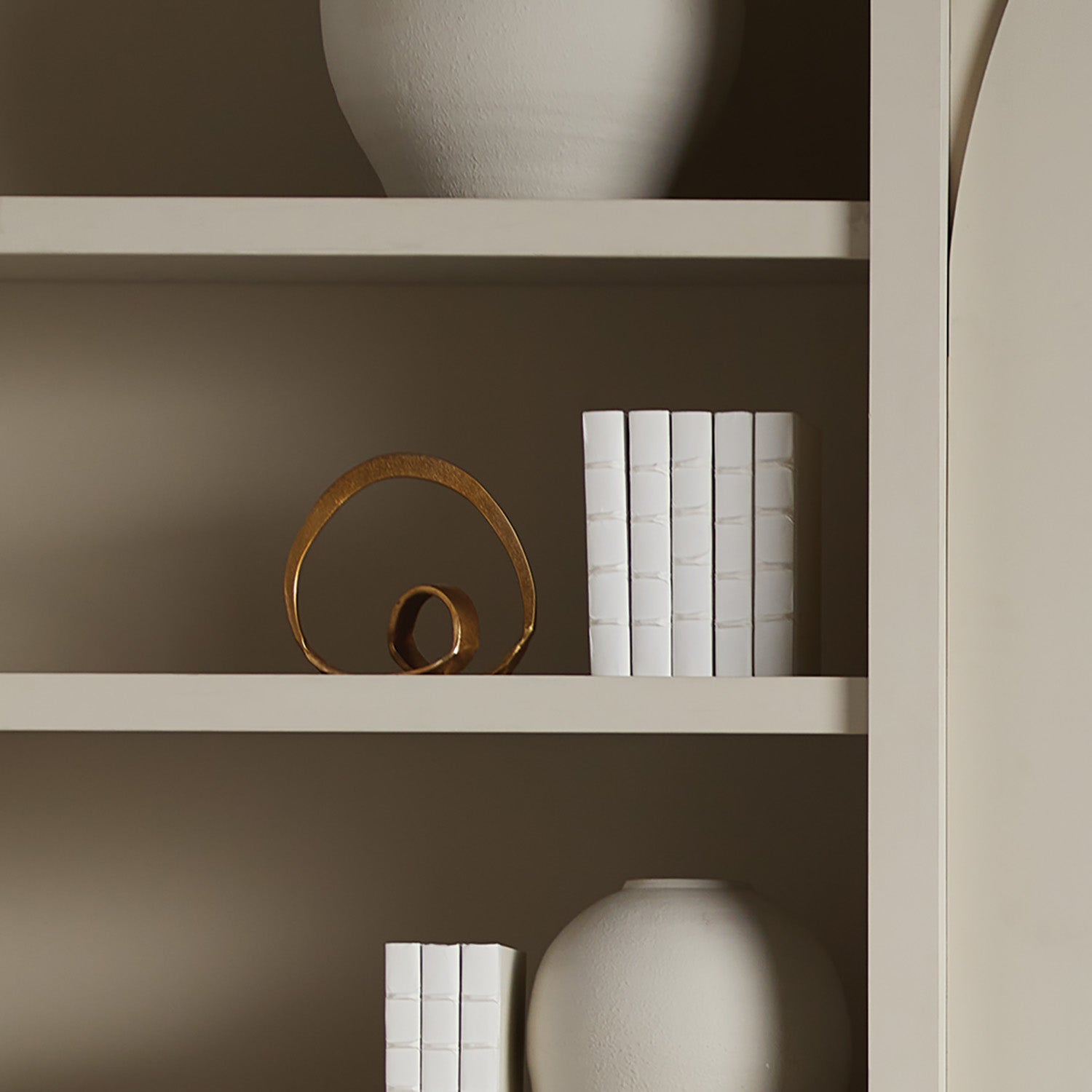Simple in form and decidedly abstract, this sculpture is inherently organic in feel. With a warm gold finish, a handsome accent for a bookshelf, ottoman vignette or on a mantel. The bold finishing touch to a clean, modern space.
