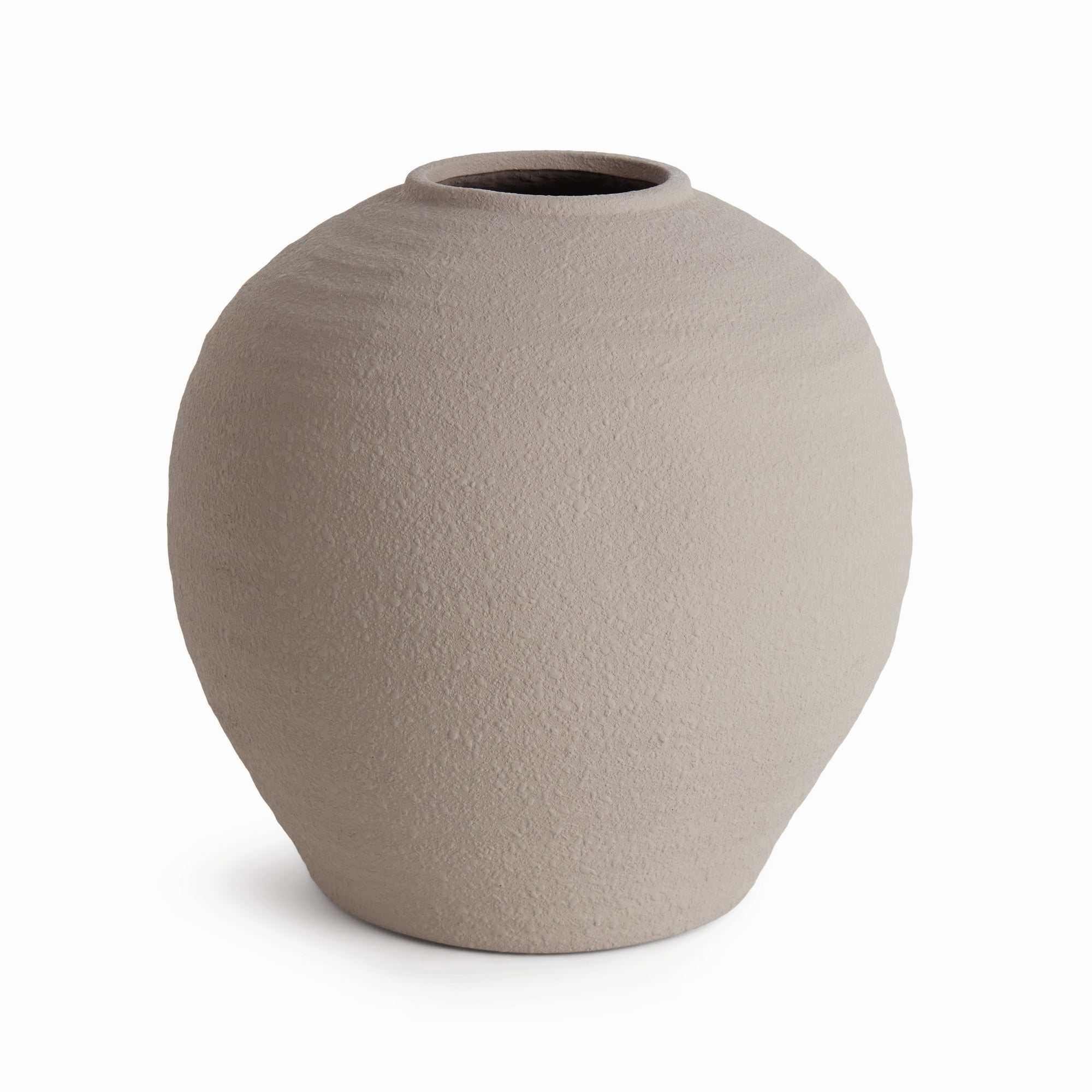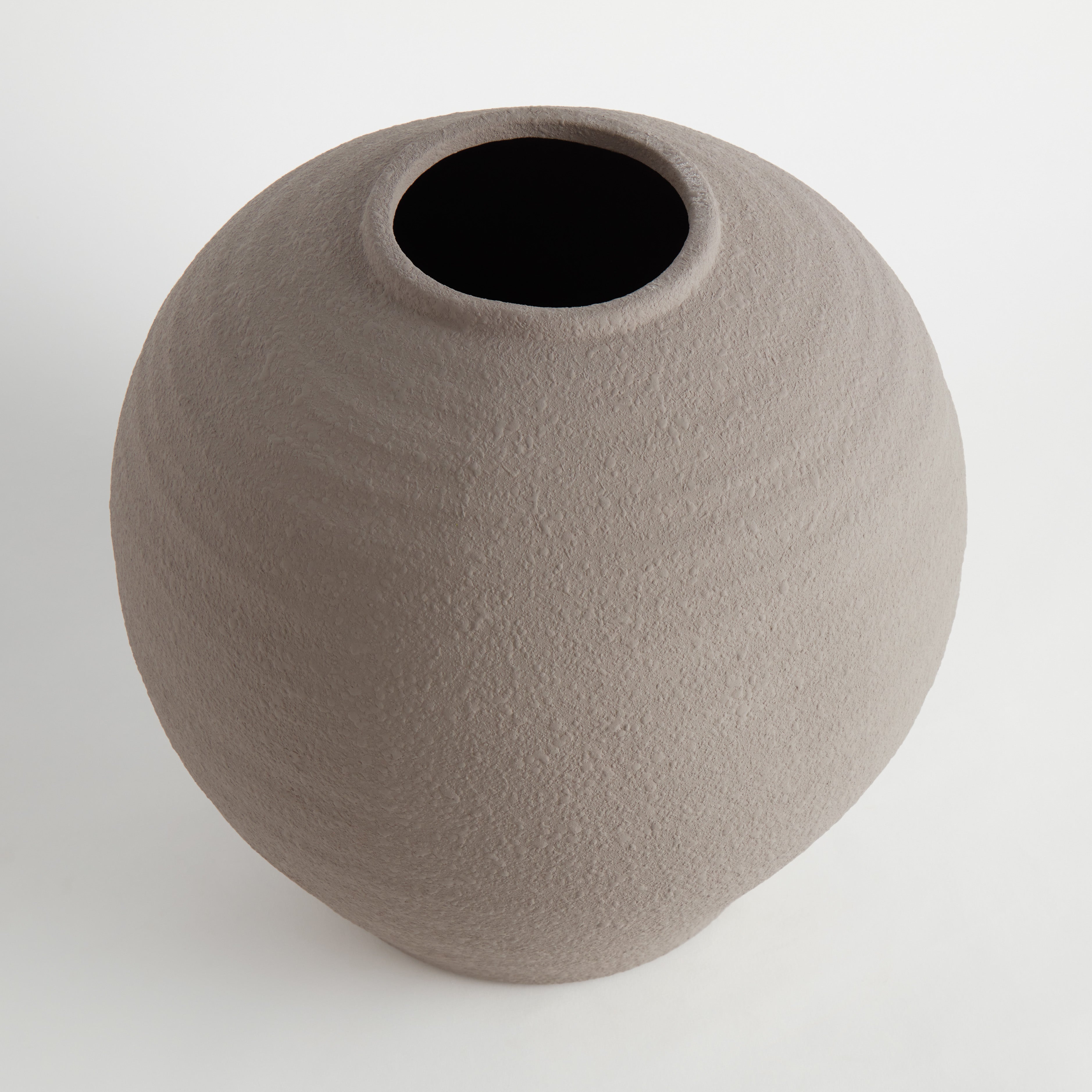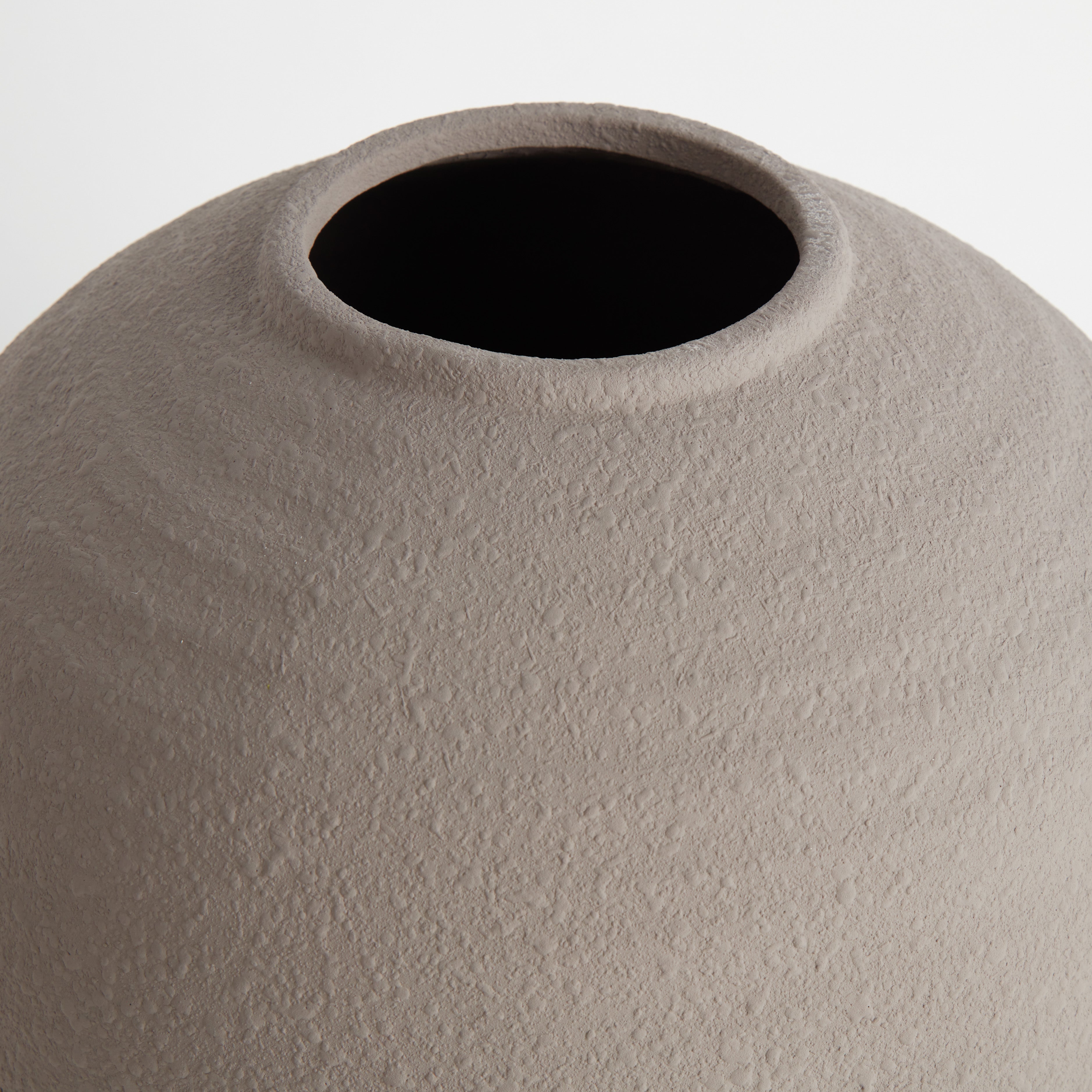 It's really all about the texture. This extraordinary terracotta vase is cold fired, creating a matte, satin-like finish. This evokes a sense of coolness or austerity. Add a couple of faux stems for just a touch of drama.