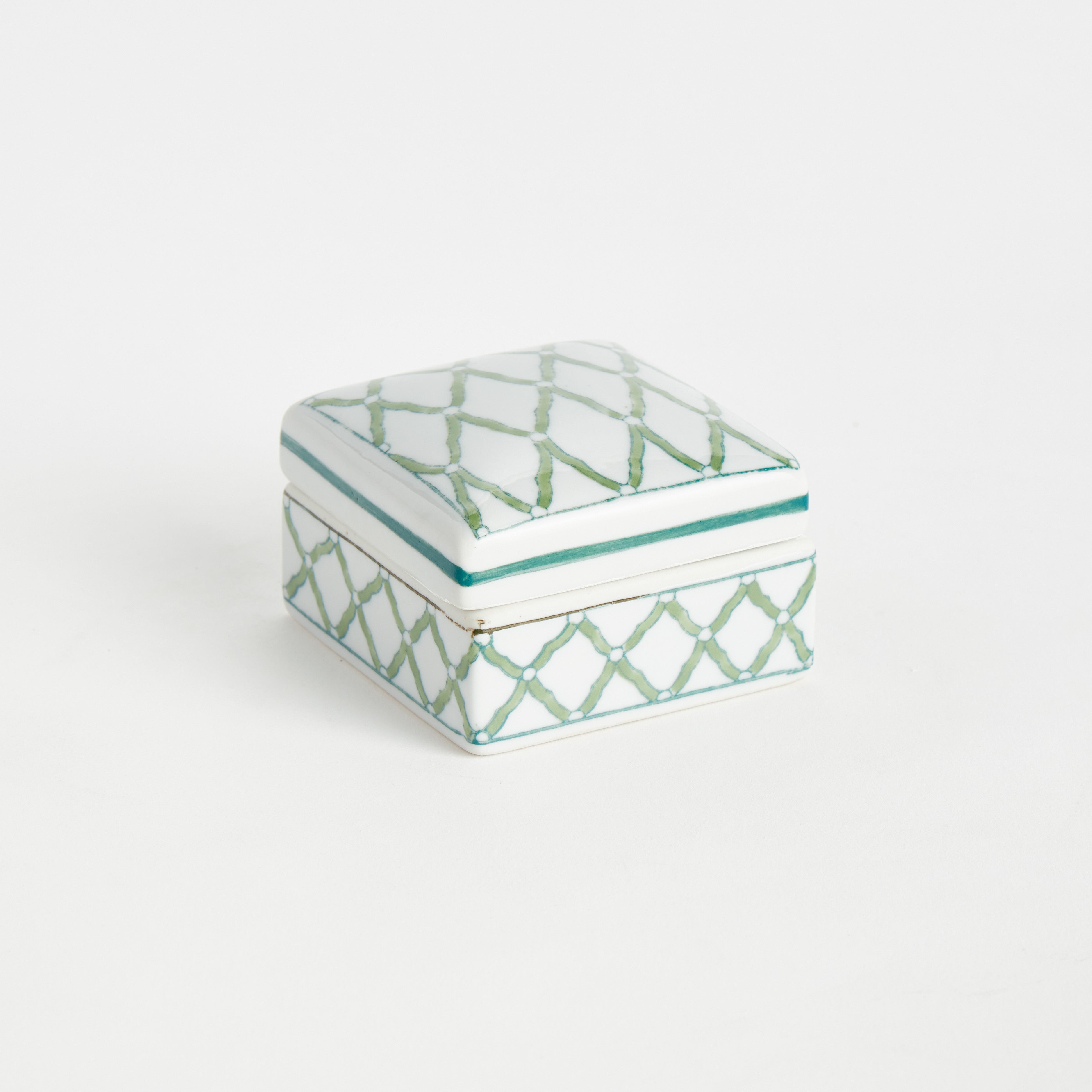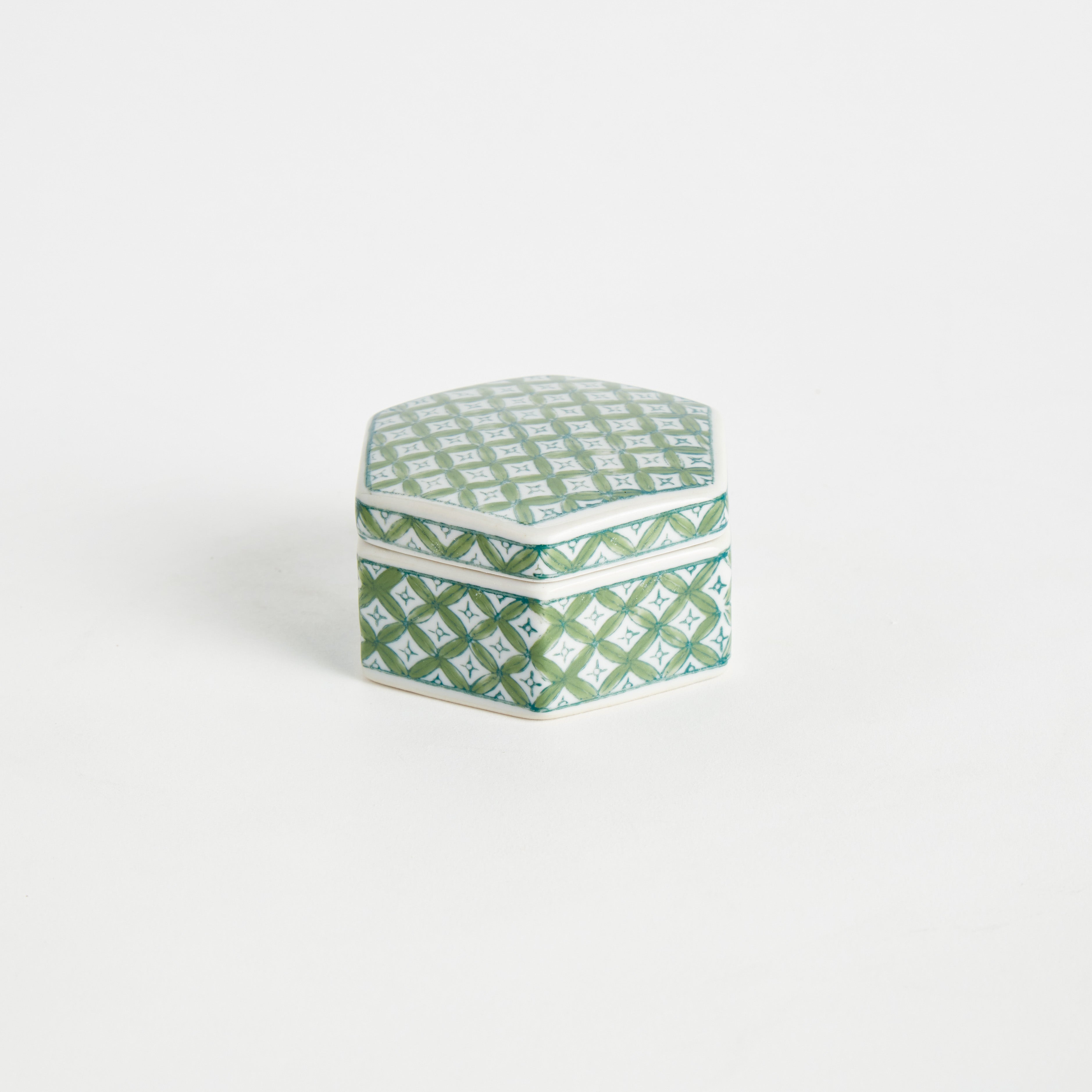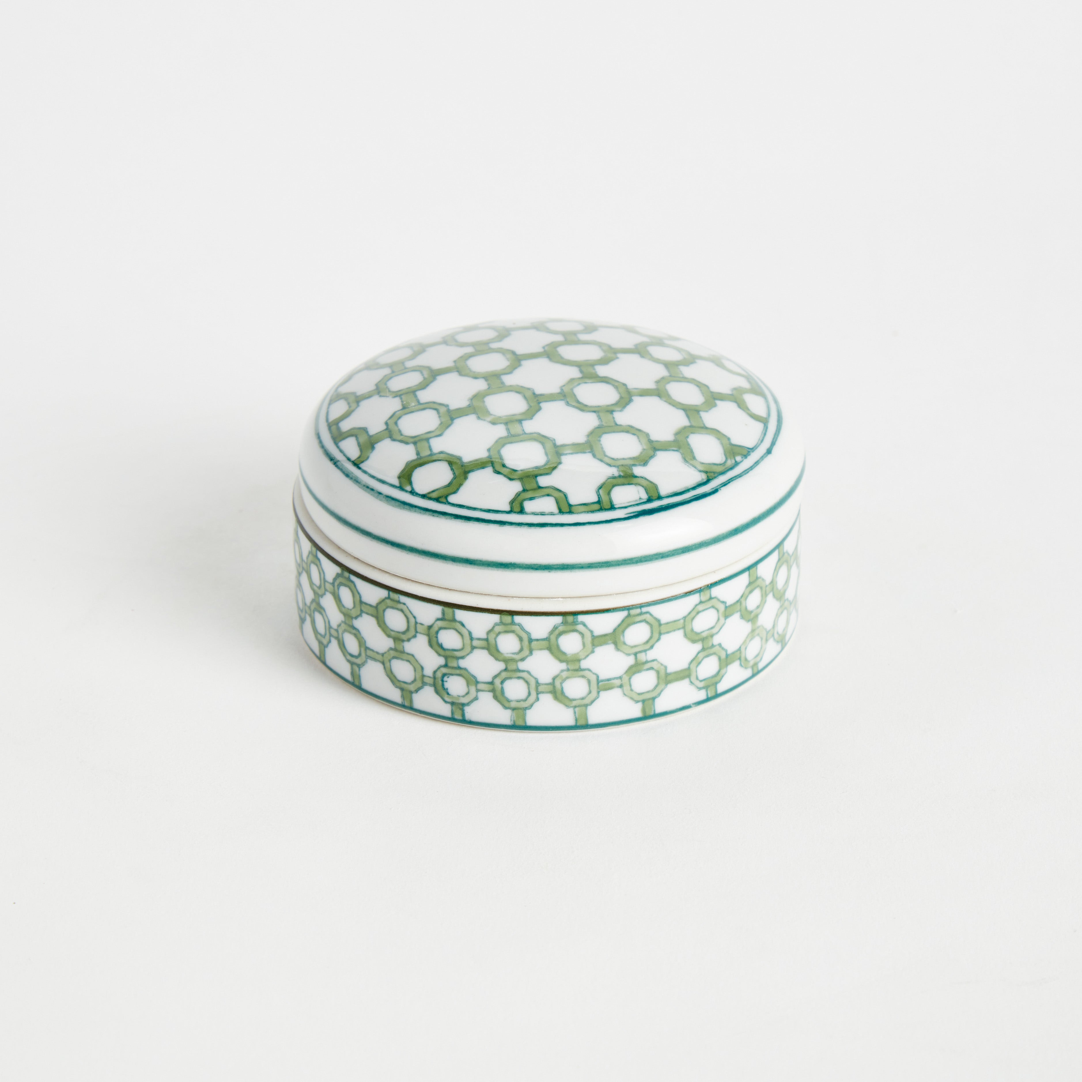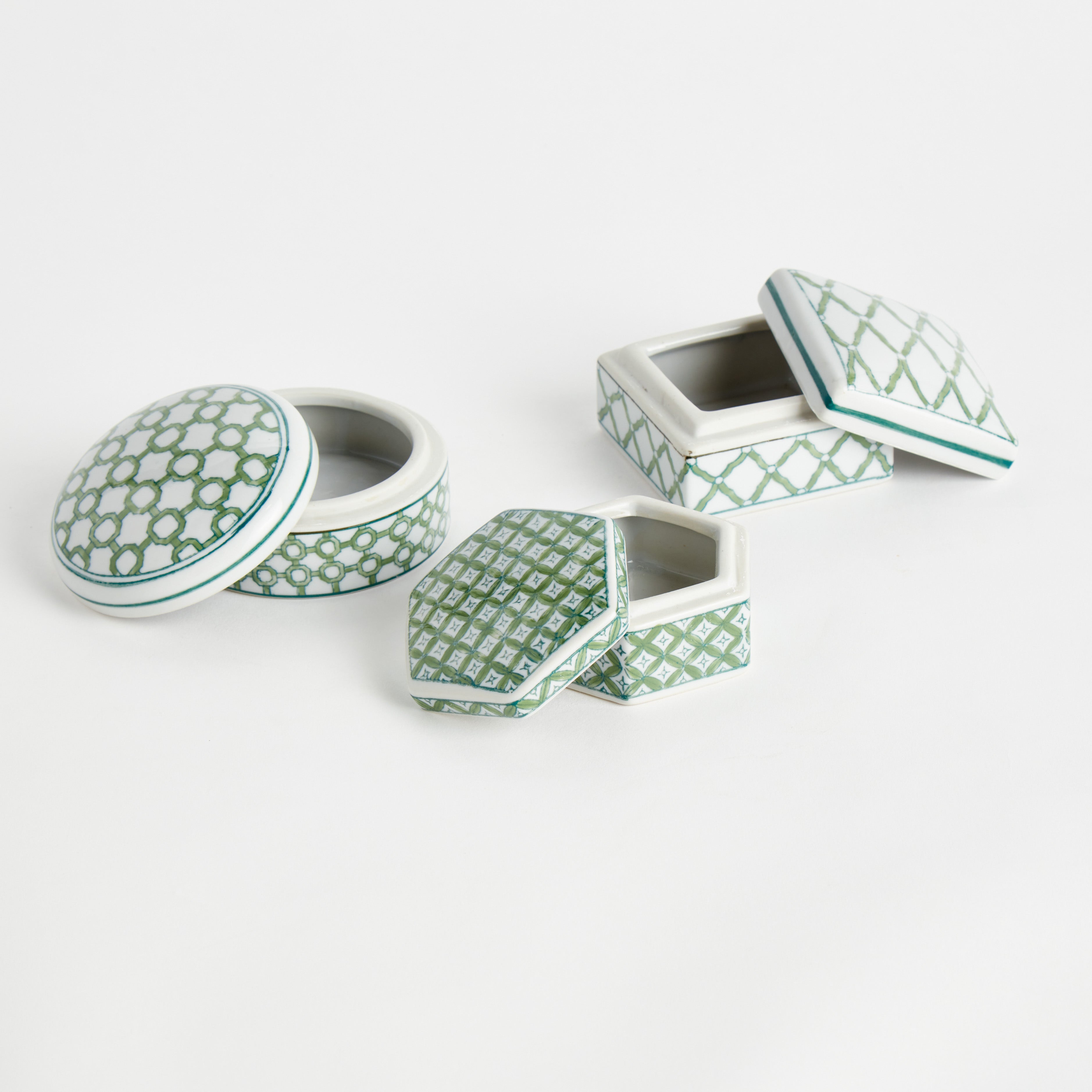 A classic chinoiserie in shades of green. How refreshing! The color green is known to have a harmonizing, balancing effect, so is an inspired design choice for the Imperial Lotus Lidded Boxes. A welcome addition, adding stability and calm to the well-appointed bookshelf, mantel or entry console.