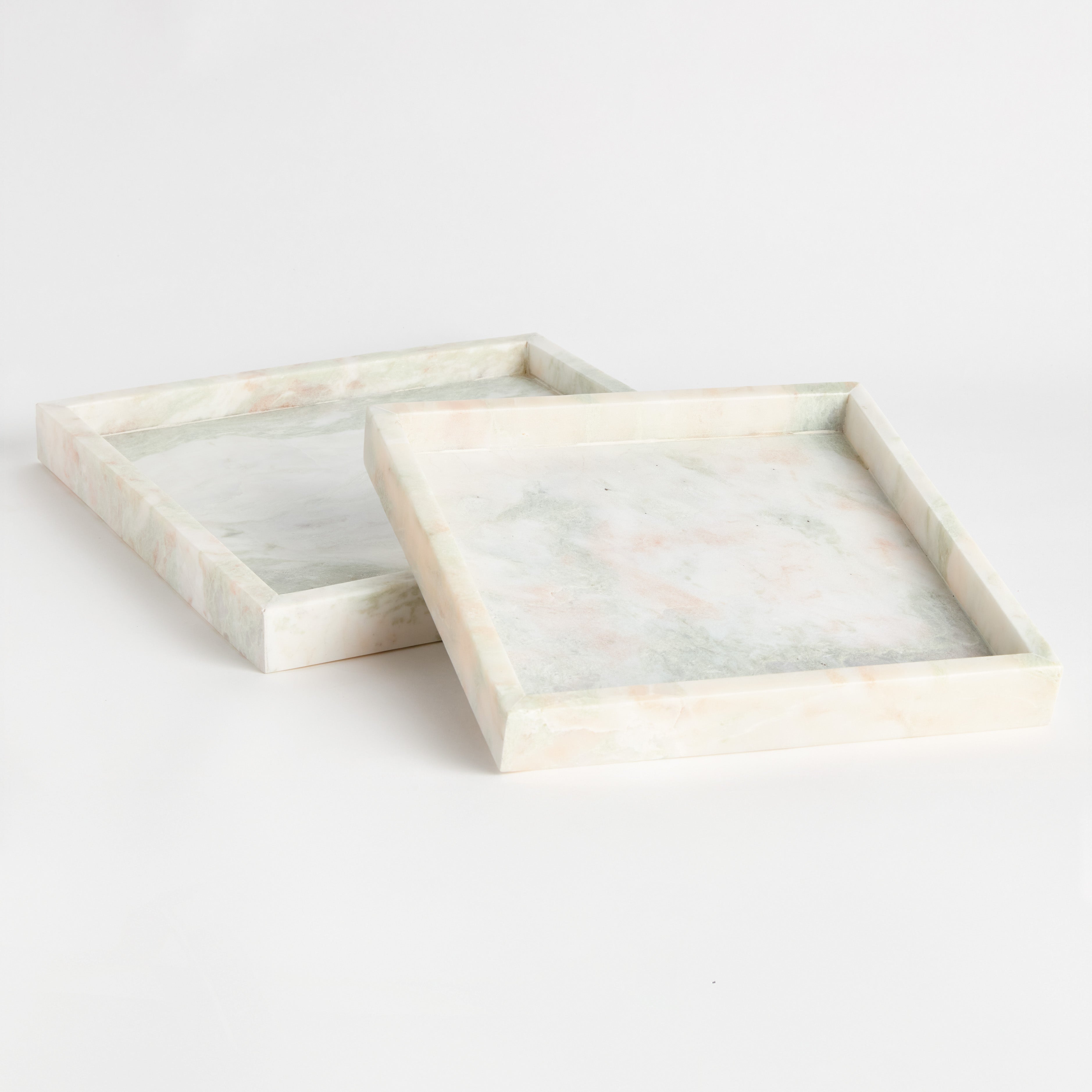 JOHANNA SQUARE MARBLE TRAYS LARGE, SET OF 2