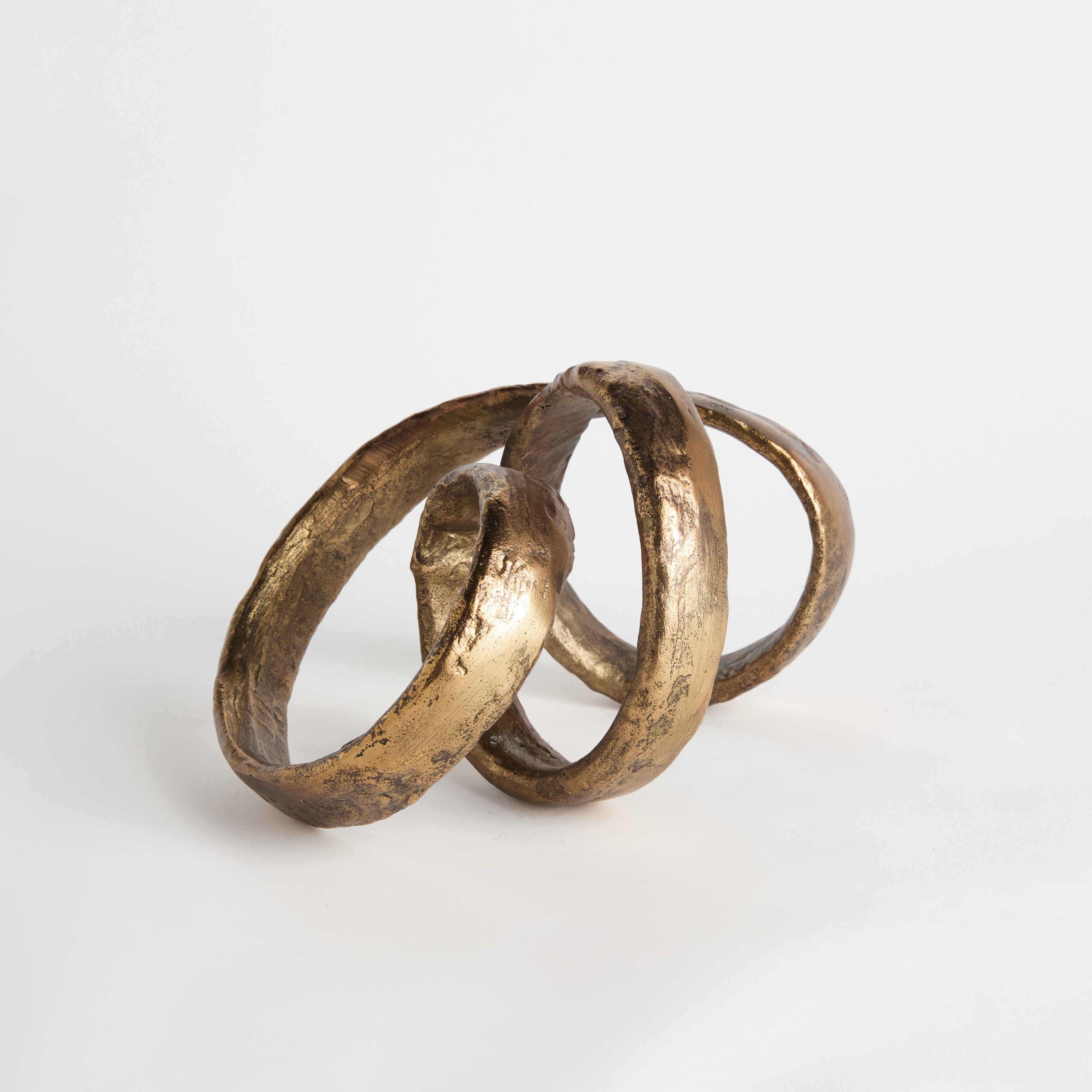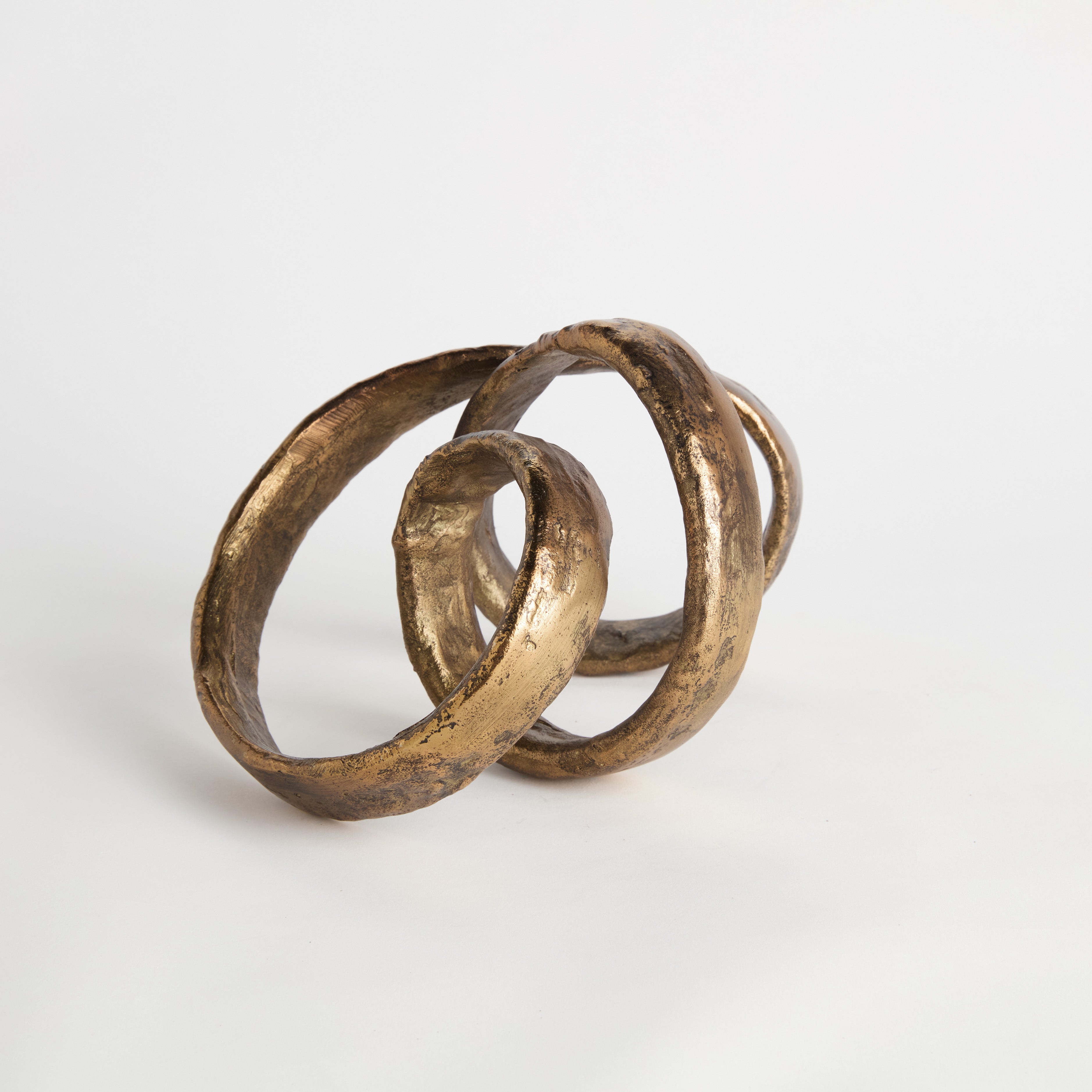 A 3-dimensional interpretation of the simple scribble, the Marin sculpture is inherently organic in feel. With an antique brass finish, a contemporary accent for a bookshelf, ottoman vignette or on a mantel. The bold finishing touch to a clean, modern space.