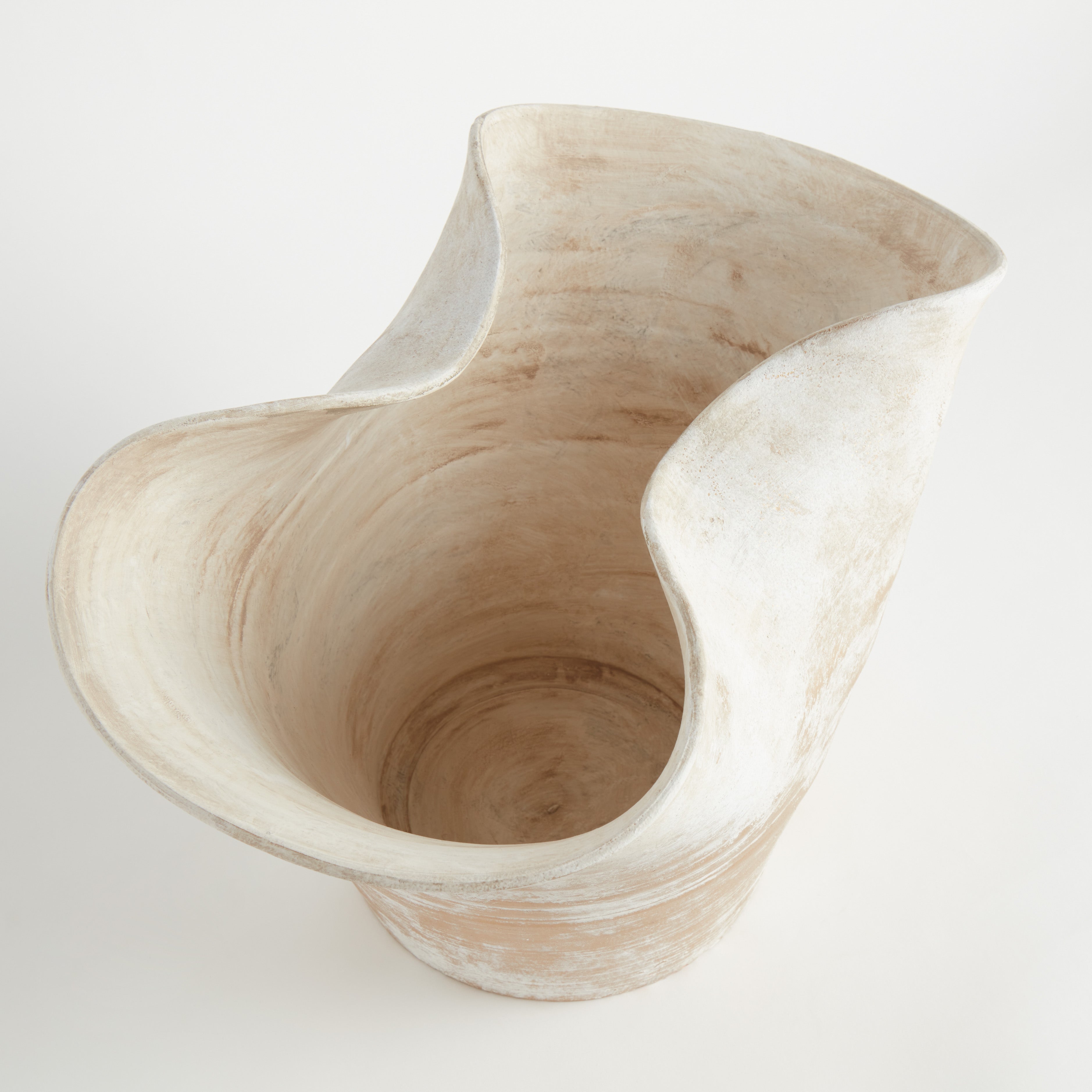 It really is all about the finish. Contemporary and rustic, in natural tones best described as 'rustic sand'. This vase has an organic form and texture all its own. As much a sculpture as a vessel. A standout piece for the modern setting.