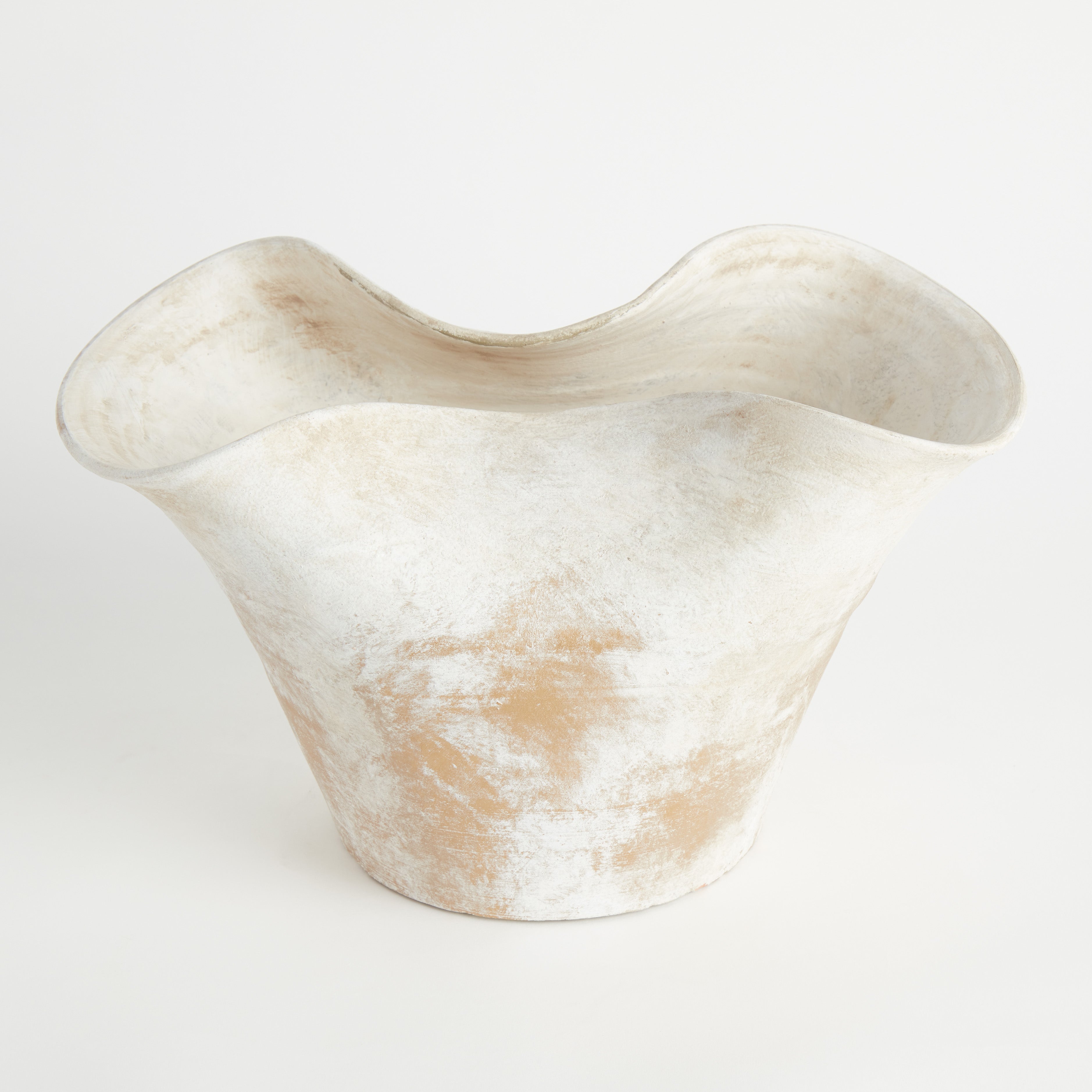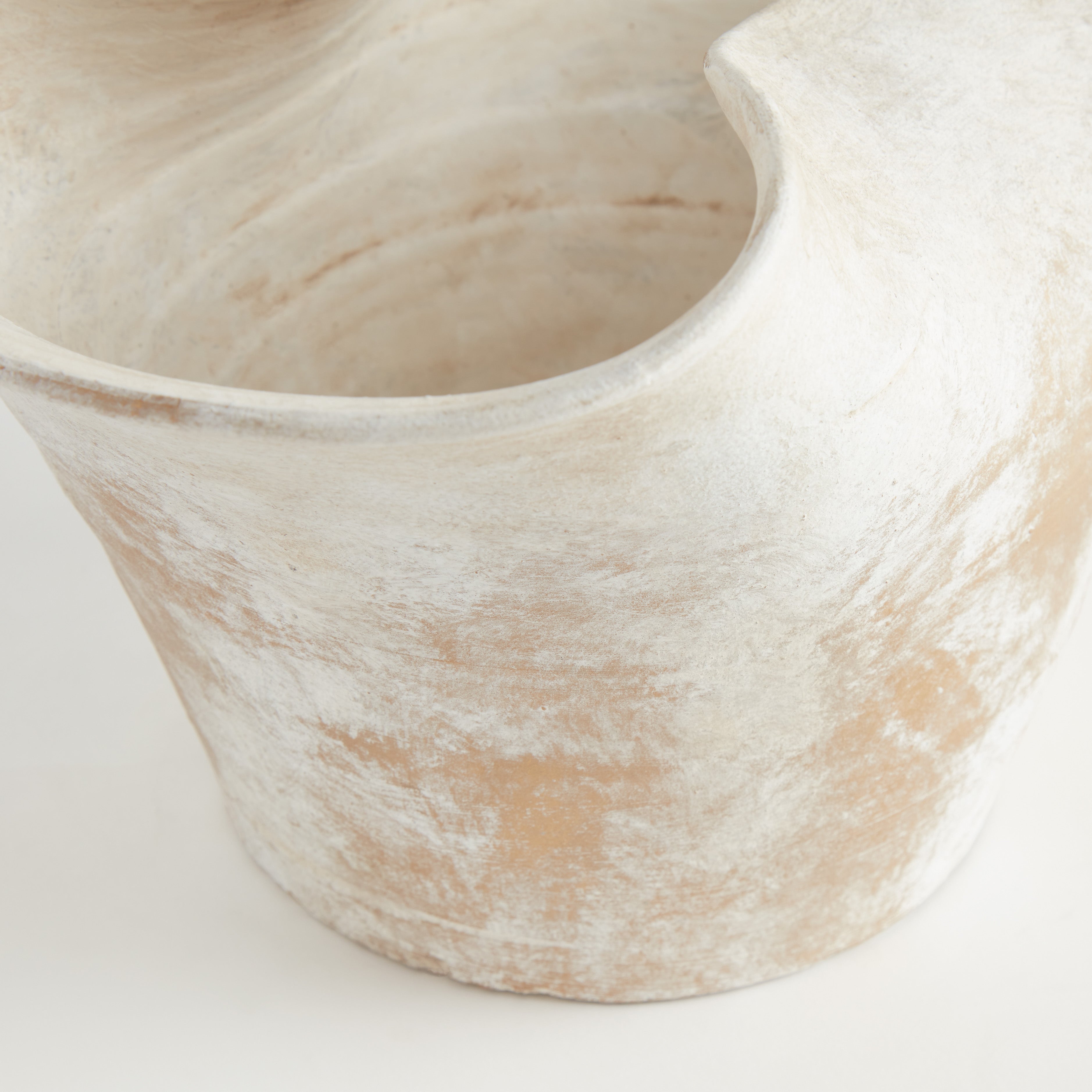 It really is all about the finish. Contemporary and rustic, in natural tones best described as 'rustic sand'. This vase has an organic form and texture all its own. As much a sculpture as a vessel. A standout piece for the modern setting.