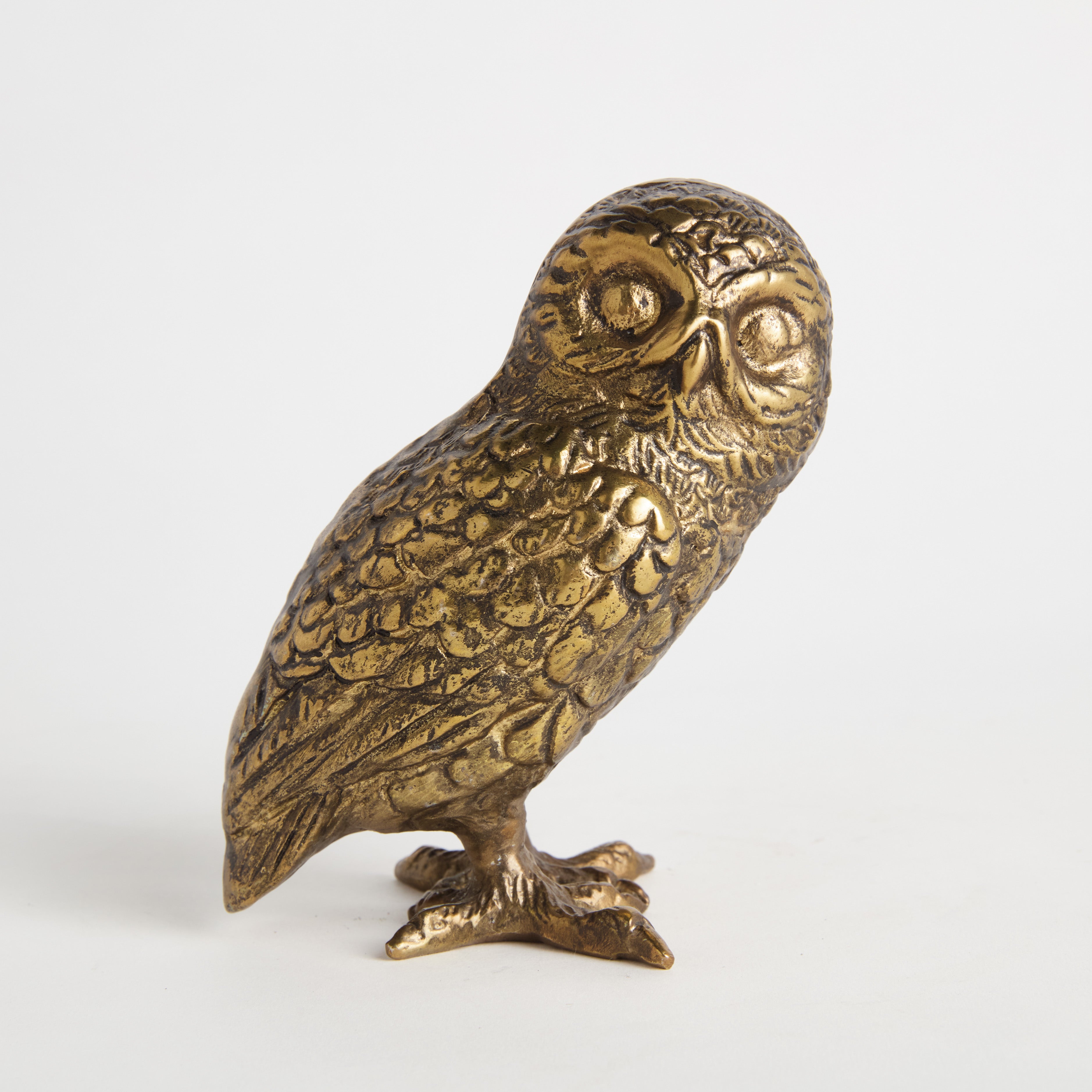 This regal creature is created by a cast aluminum sculpting method. A detailed owl sculpture you'll only find at Napa, it sits atop a tapered bronze base. A handsome accent tucked away in a bookshelf, or holding court on a few art books on a well-styled ottoman.