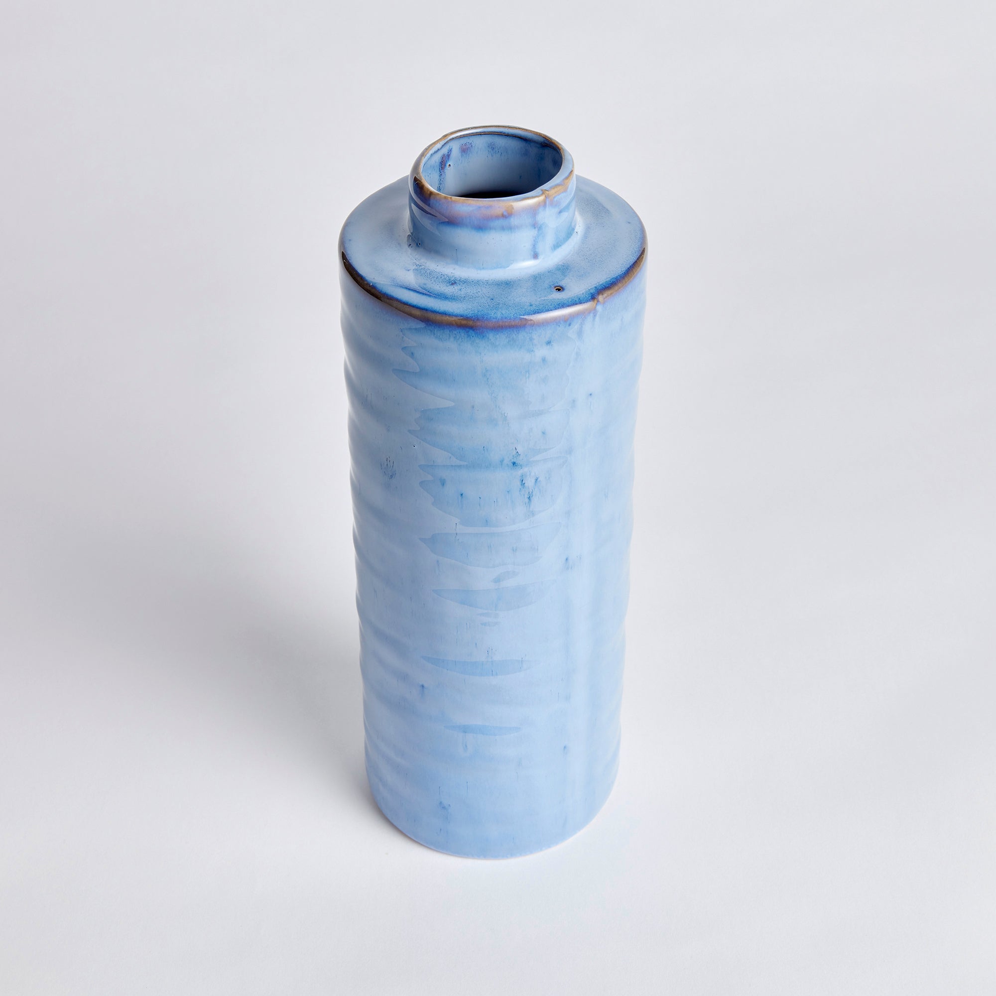 Modern and simple with a tall slender form. Finished with a rich, reactive glaze, it a charming accent for console or bookshelf. It's all about the glaze, isn't it?