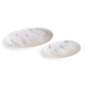 In a clever use of enameled iron, these lightweight decorative plates are painted by hand. With a creamy mocha palette inspired by a latte, with layers of milky froth and coffee tones swirling, it is modern artistry defined.