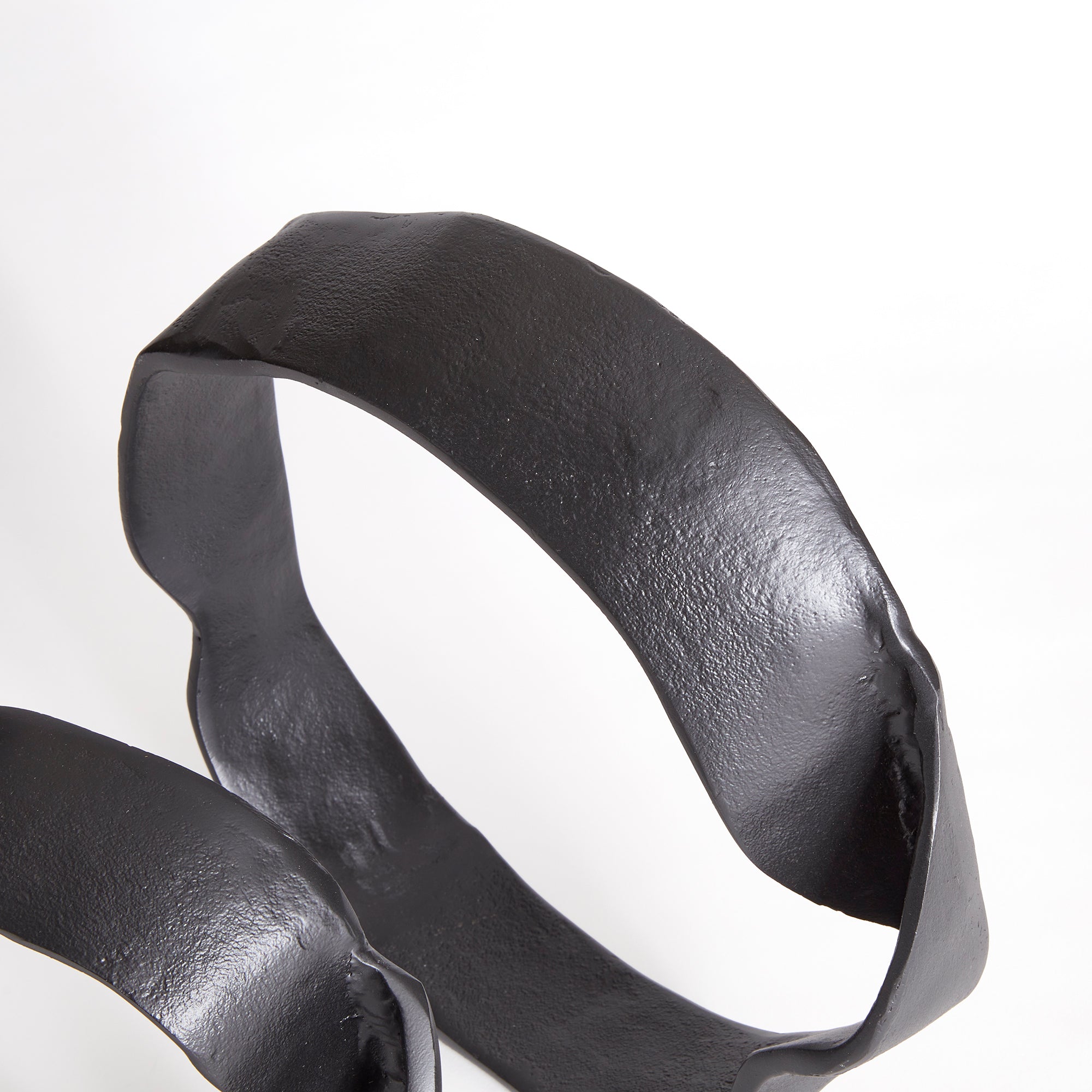 A matte black finish and rough, repeated circular shapes make this pair of cast aluminum sculptures unique. A contemporary touch for home office or den, in a book shelf, or styled in a tray on an ottoman.