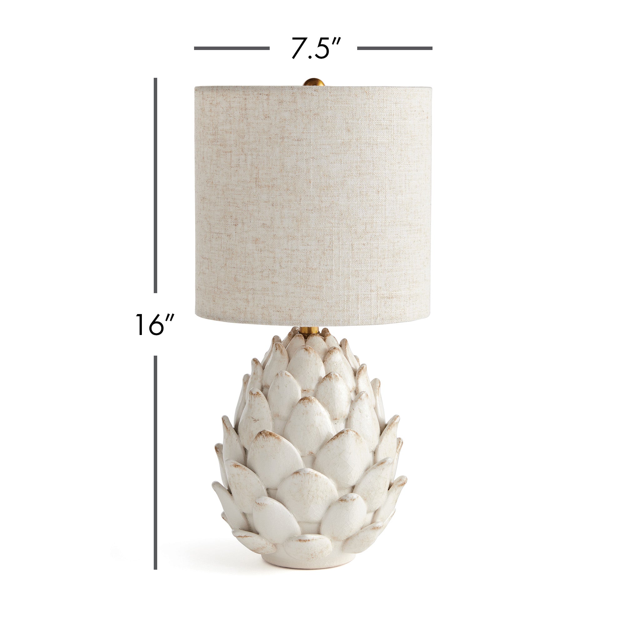 This stunning artichoke-inspired ceramic lamp is hand finished with antiqued edges. Topped with a natural linen shade, it makes a beautiful addition to the traditional space.