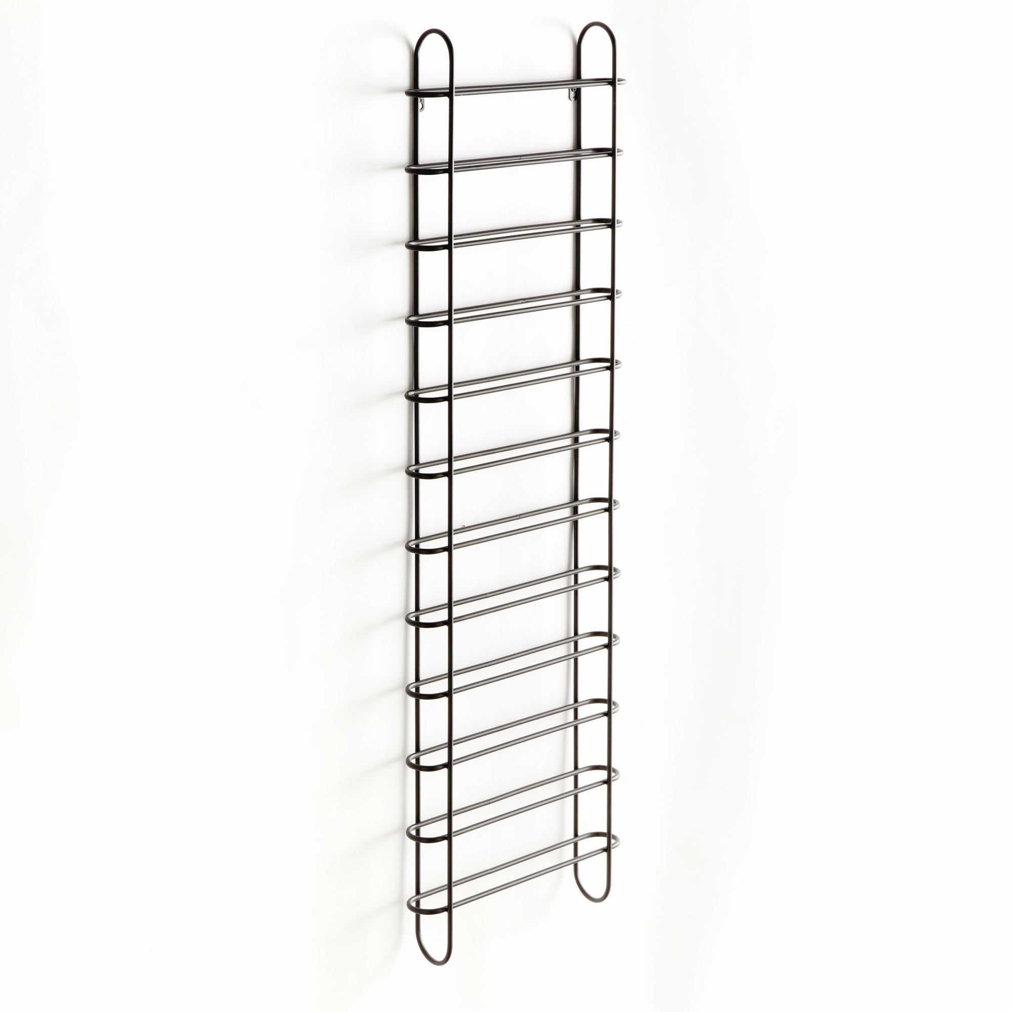 Clean and modern, this updated design is made of round metal stock. It effortlessly showcases your favorite twelve bottles. A sturdy, wall-mounted design, it uses a minimal floating shelf design for a lighter look.