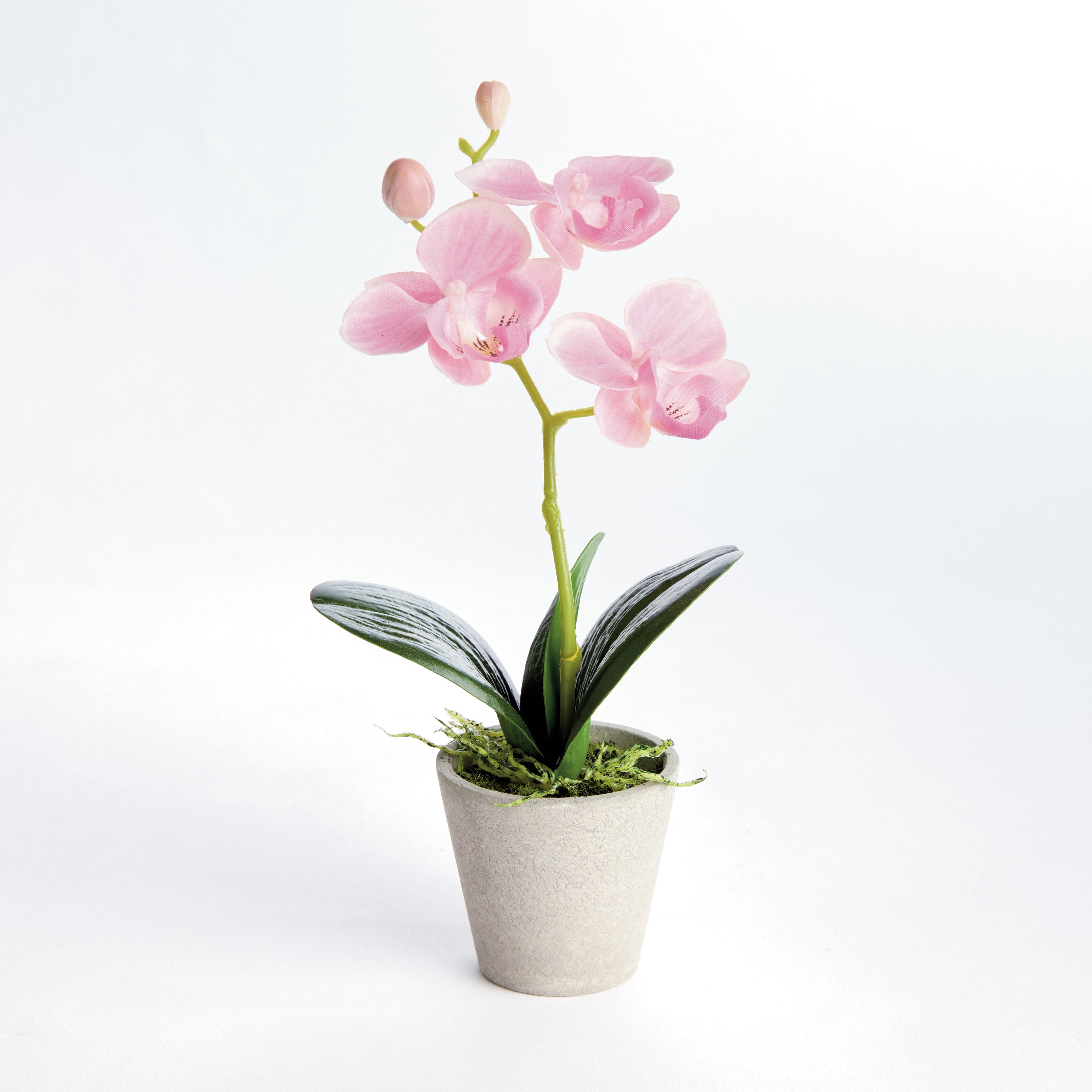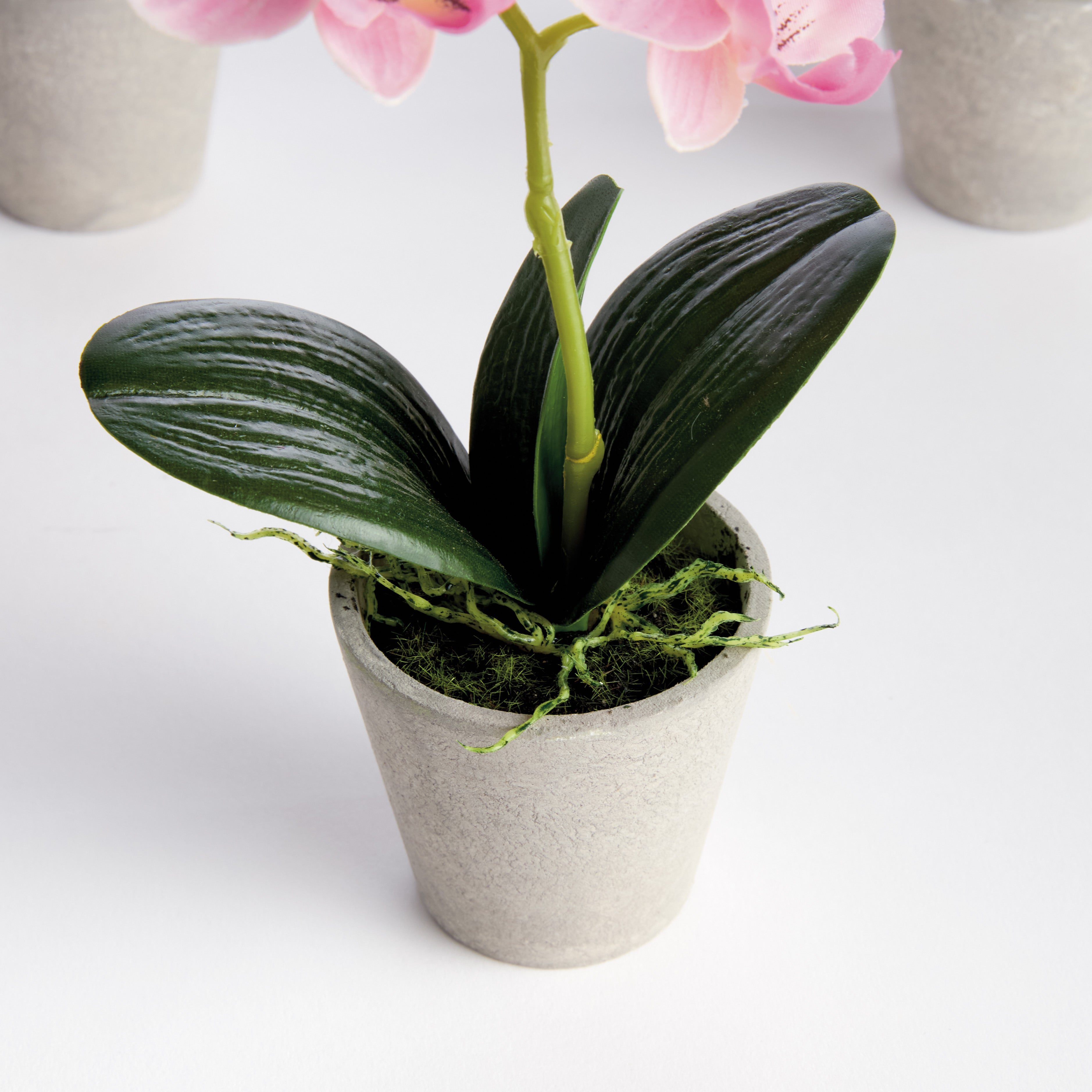 This set of 4 adorable mini phalaenopsis orchids come in their own tiny concrete pots. The signature delicate pink petals are masterfully constructed by artisans and it shows. Great for hostess gifts or add a name tag to each for colorful place settings.