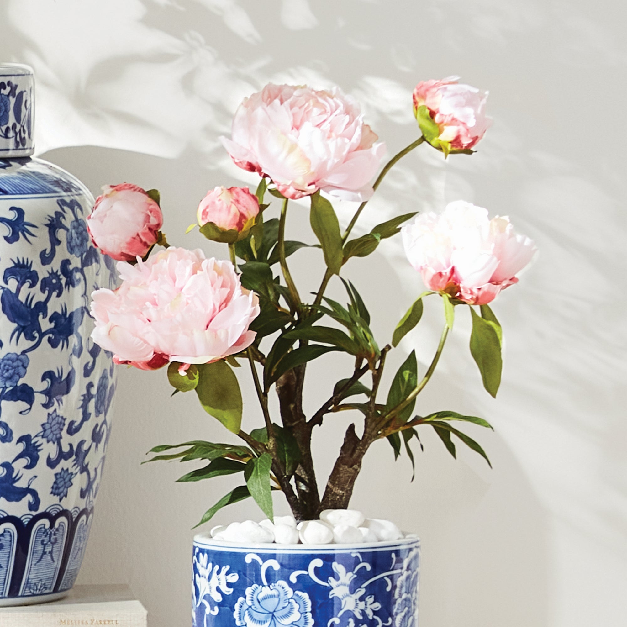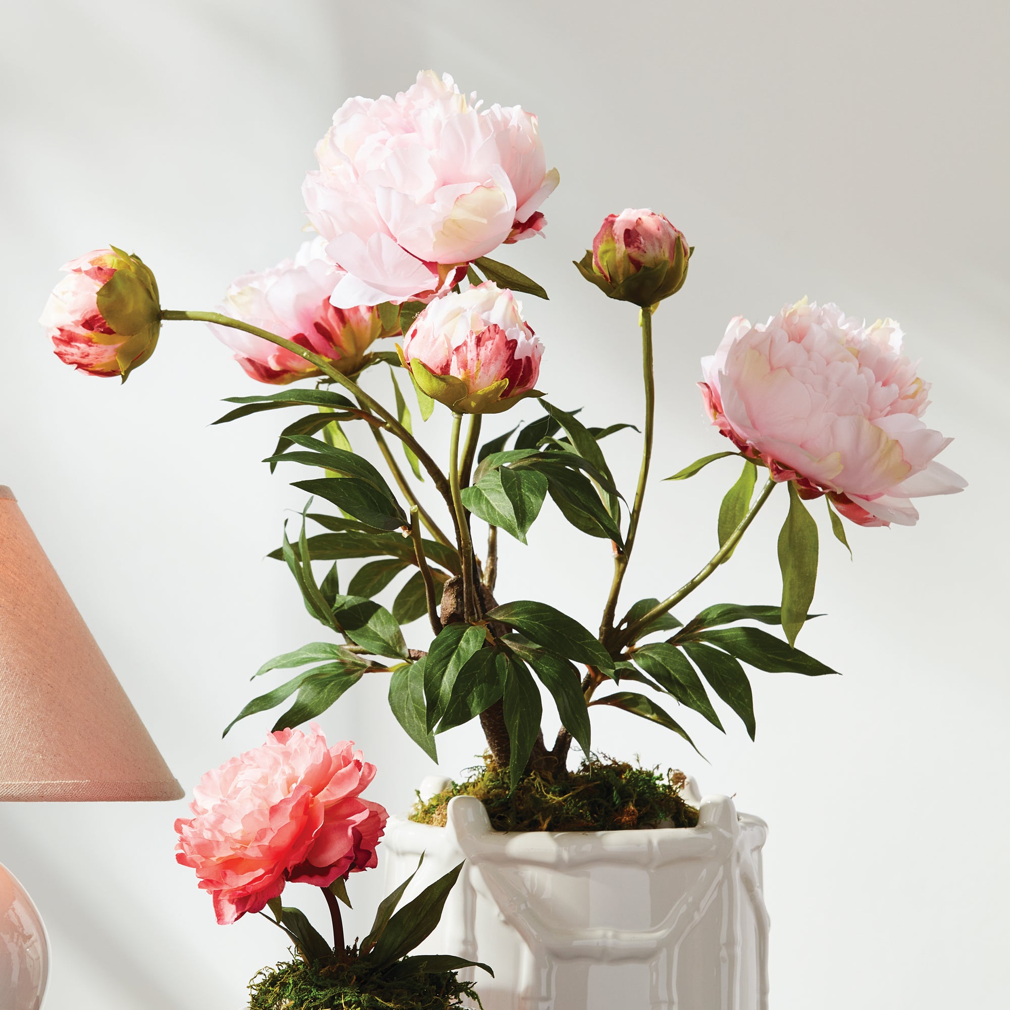 This lush peony comes in it's own concrete grower's pot. The signature delicate white petals are masterfully constructed by artisans and it shows. Drop-in to your favorite vessel, or display as is for a no-maintenance elegant accent.