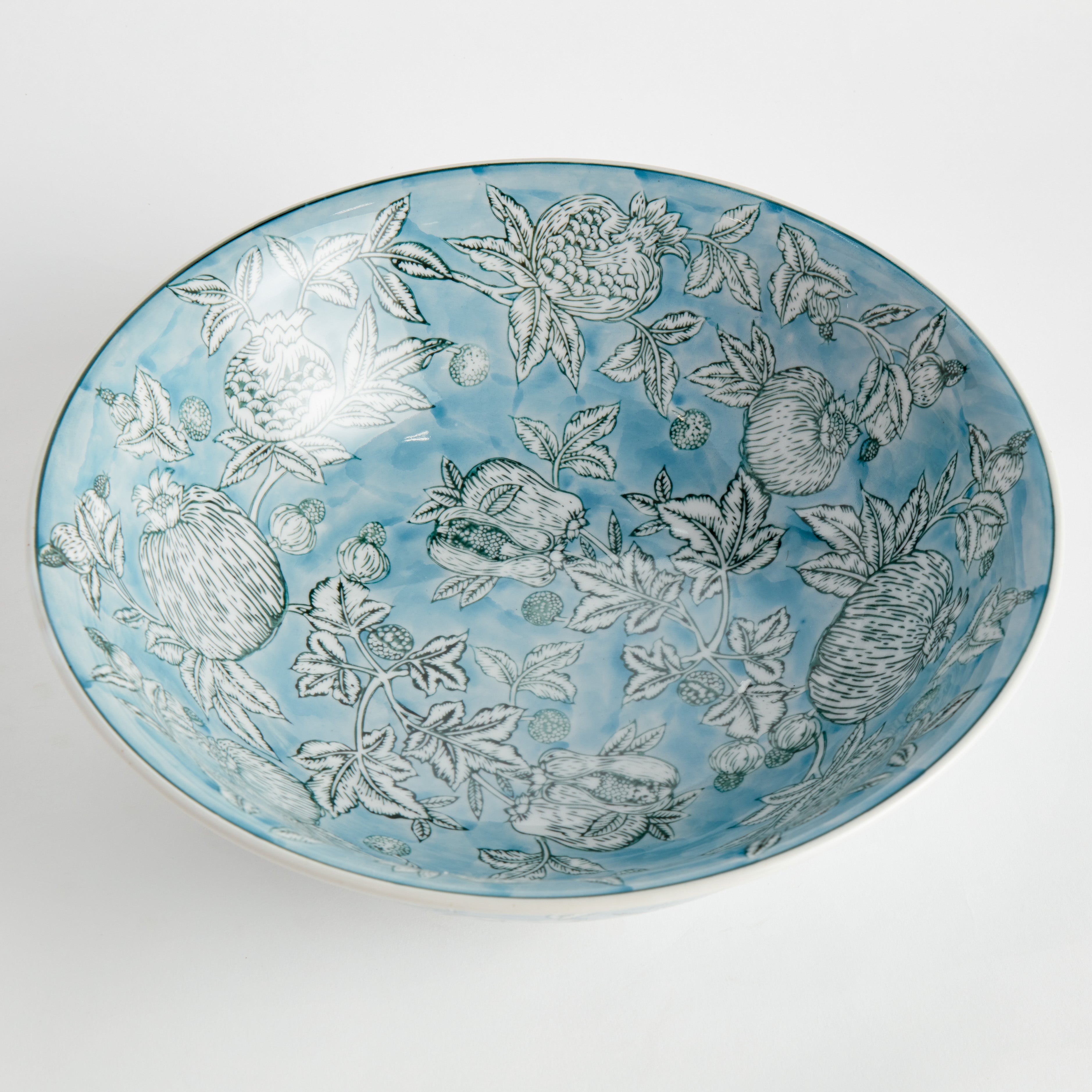 In a mix of modern and traditional sensibility, this Pomegranate Sketch Decorative Bowl is an exquisite accent. Hand painted on porcelain in a gestural pattern, the soft tones are just the right shade of ethereal blue. Fill with decorative orbs, or display as is for a classic touch.