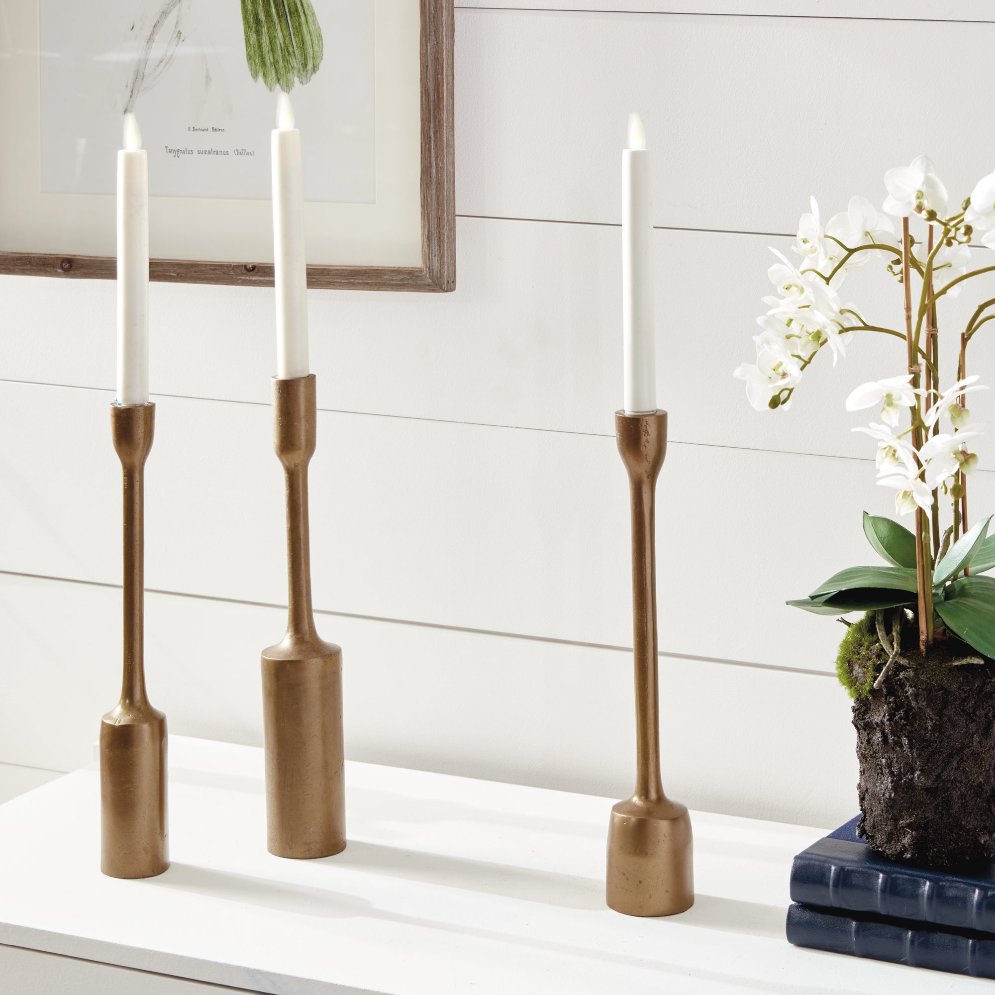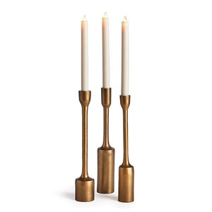 In a solid antique brass, these candleholders are substantial pieces. Pair with our LightLi tapers and create a glowing centerpiece.
