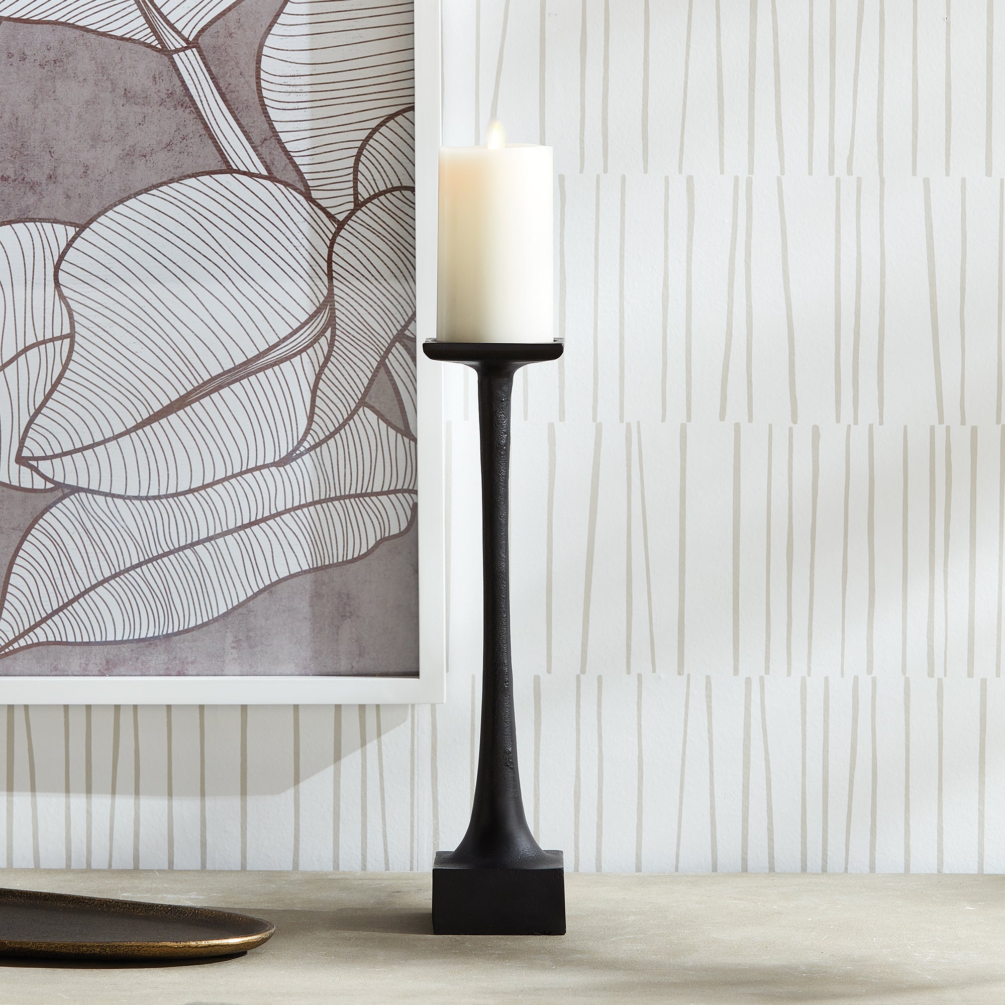With a weighted base and tall slender body, this candle stand is a smart design. With classic lines, it plays well in the transitional as well as traditional space. Add your favorite pillar candle for a warm glow.