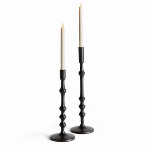 This set of 2 substantial taper holders are perfect for mantel or front entry. Made using a centuries old sand-cast method, the notches along the stem add a modern touch.