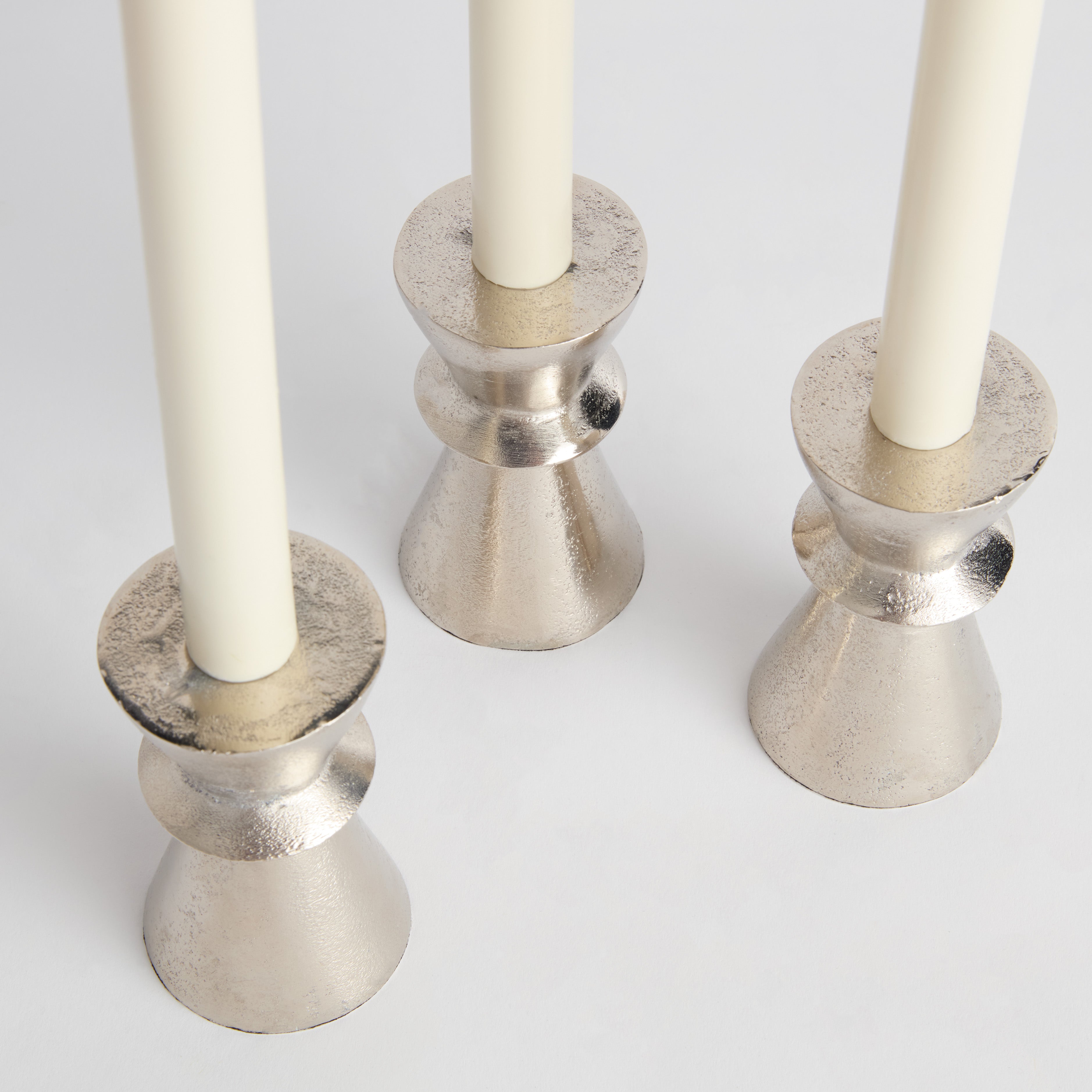 With a short, geometric base, this piece is a minimalist design. Paired with a standard size taper candle, a fitting accent for the industrial modern space.
