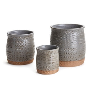 Craft potter-inspired, the Amory Pots are reminiscent of mid-century style. The teardrop pattern is an eclectic touch.