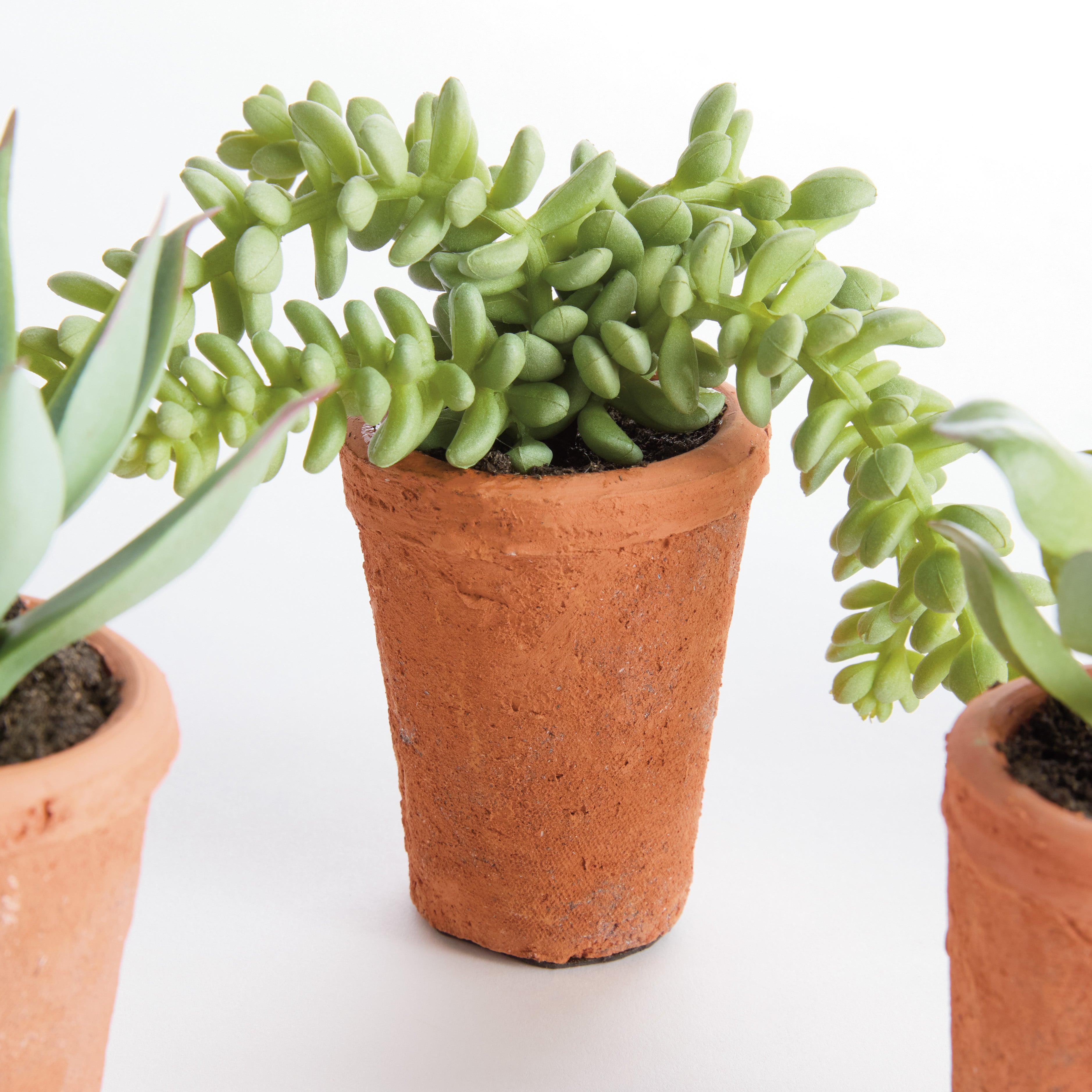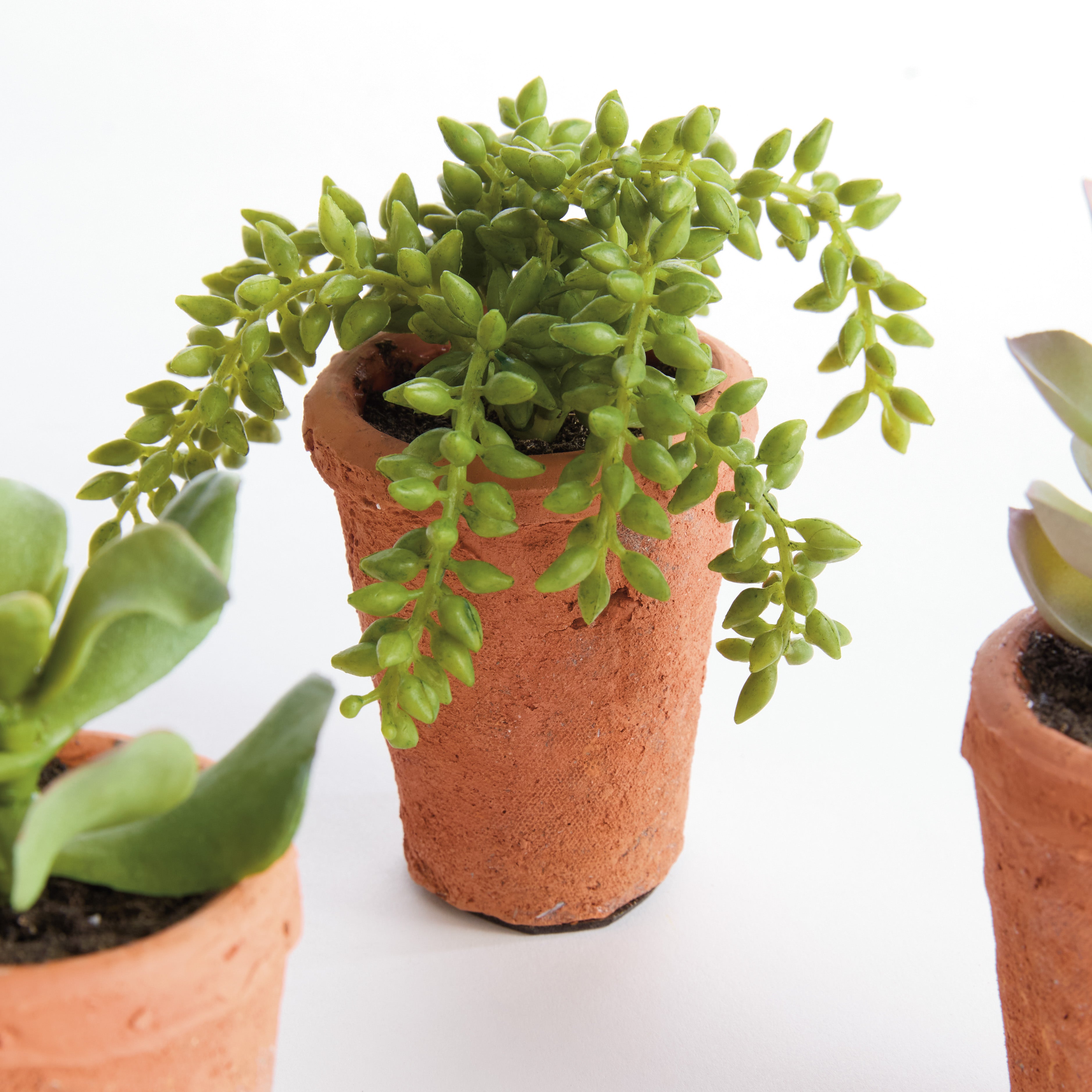 100% realistic- a complete set of mini succulents. These drop-ins are no-maintenance works of art. Right down to the carefully crafted root ball, just as nature designed. This set of 6 are complete with adorable little mini pots.