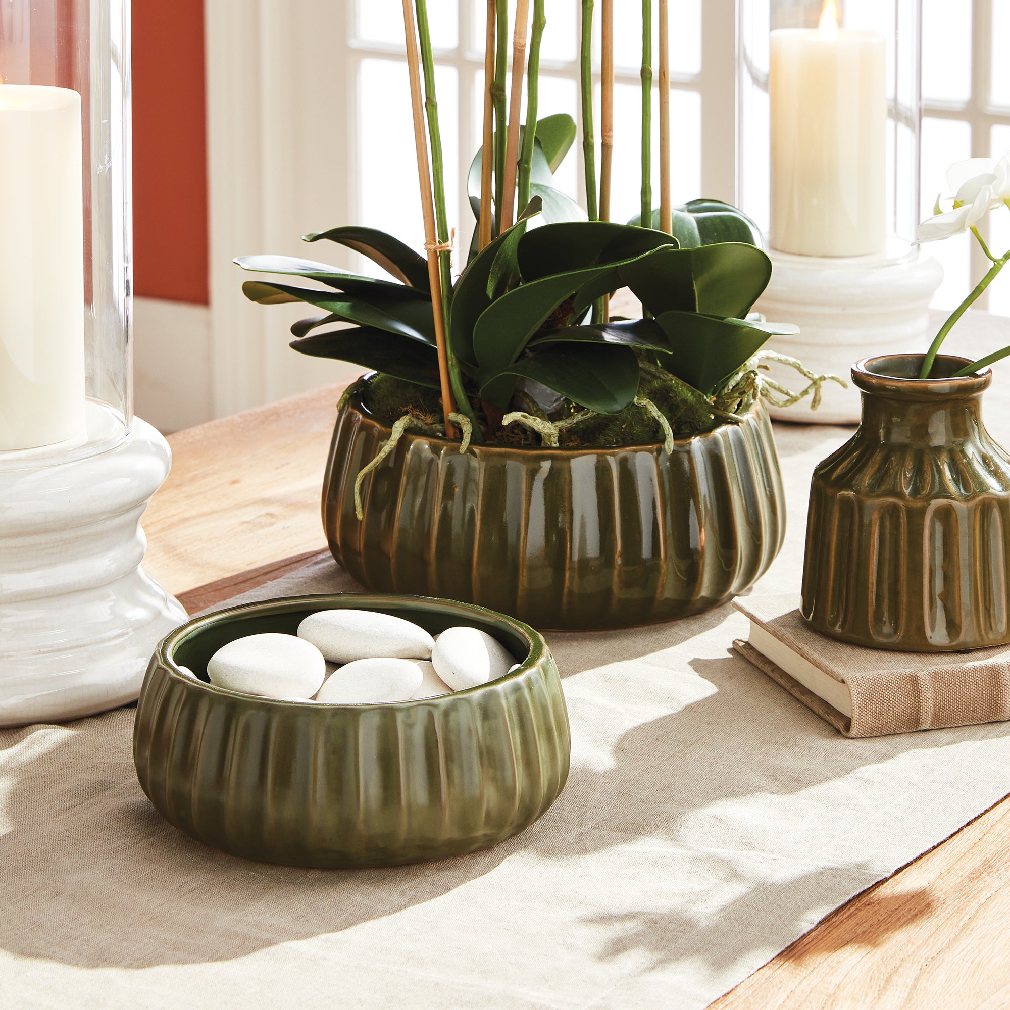With a highly saturated glaze and sculpted ribbing, these bowls brings all the character. Tuck them into a well-styled bookshelf or add a colorful faux floral arrangement adding color and height to the mantel.