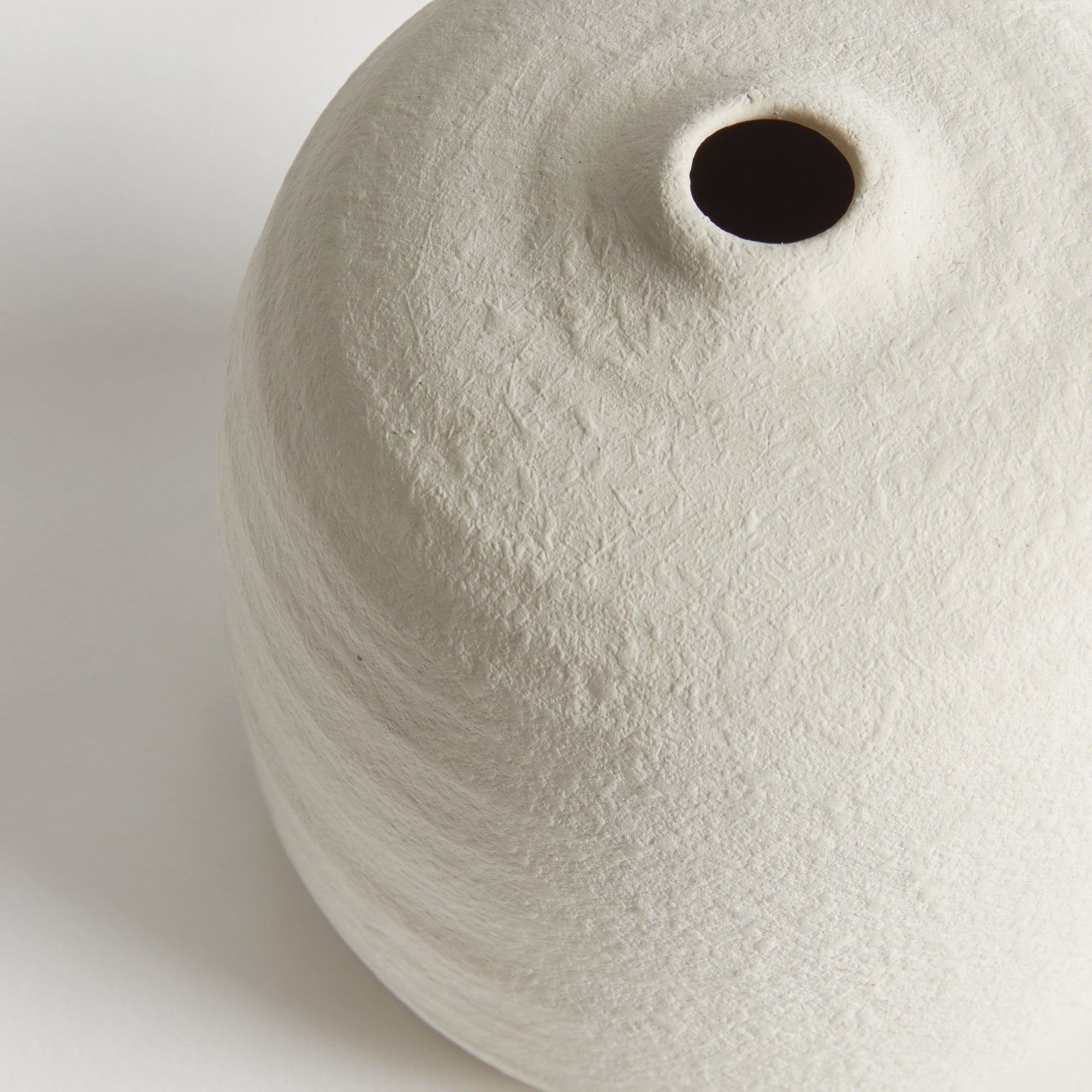A classic rotund shape and a very narrow opening makes this vase perfect for a single branch or tall faux floral stem. The cold-finish putty color of this terracotta beauty is at home in the modern space.