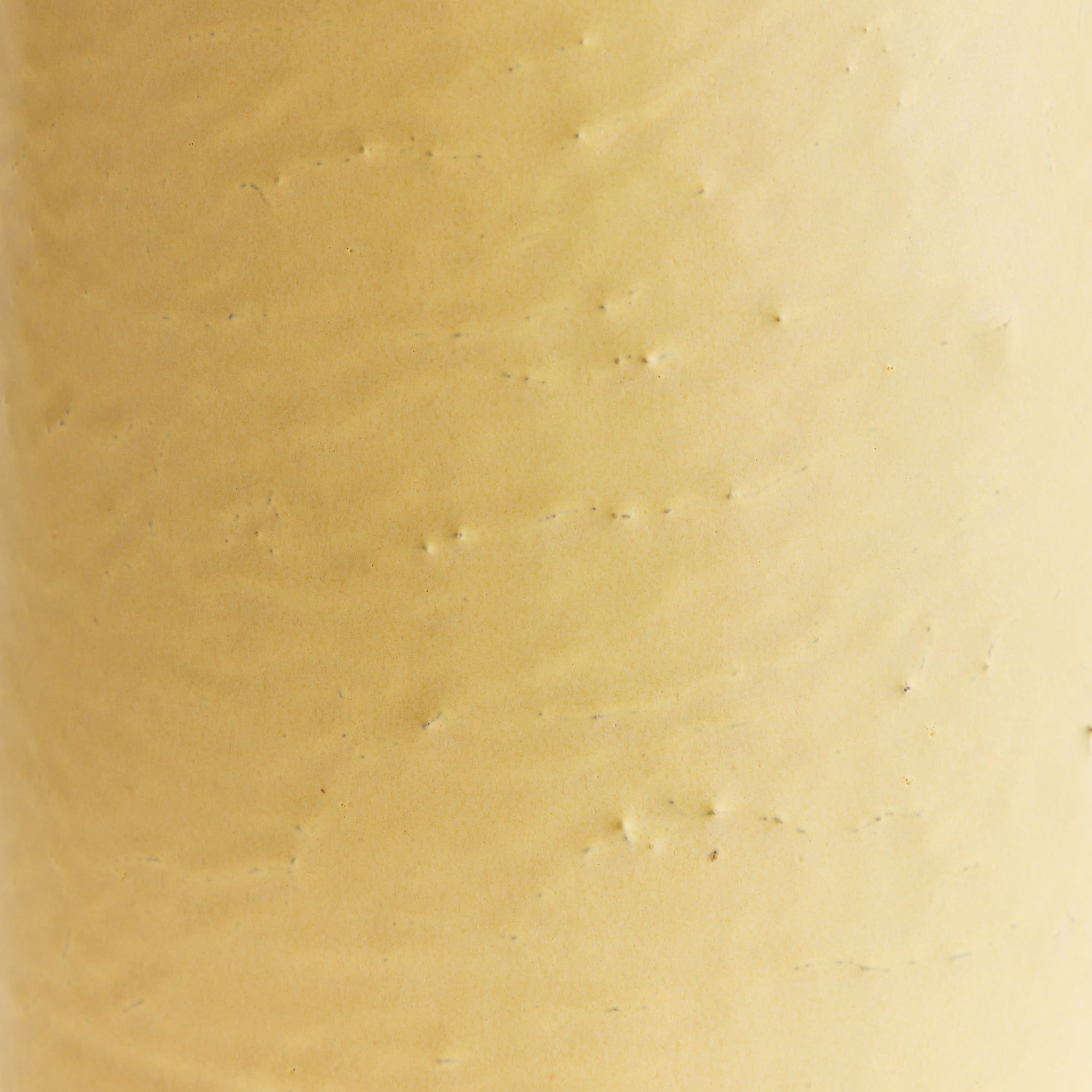 With a crackled glaze, uneven texture and basic form, this tall vase is simple and raw. In a refreshing buttercup yellow, like a freshly made ceramic piece direct from the hands of the artist.