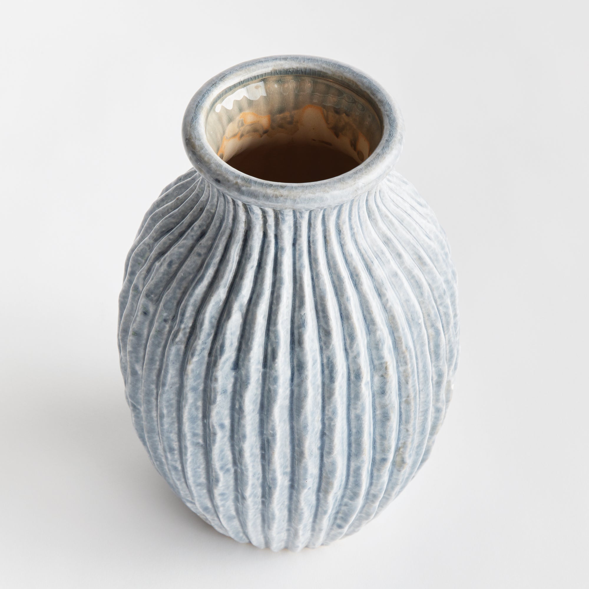 Subtle in a soft blue glaze, this vase has an understated beauty. With an artisan's touch, it is a stand-out accent piece. Drop a few faux stems in or display as is for a pop of soft color.