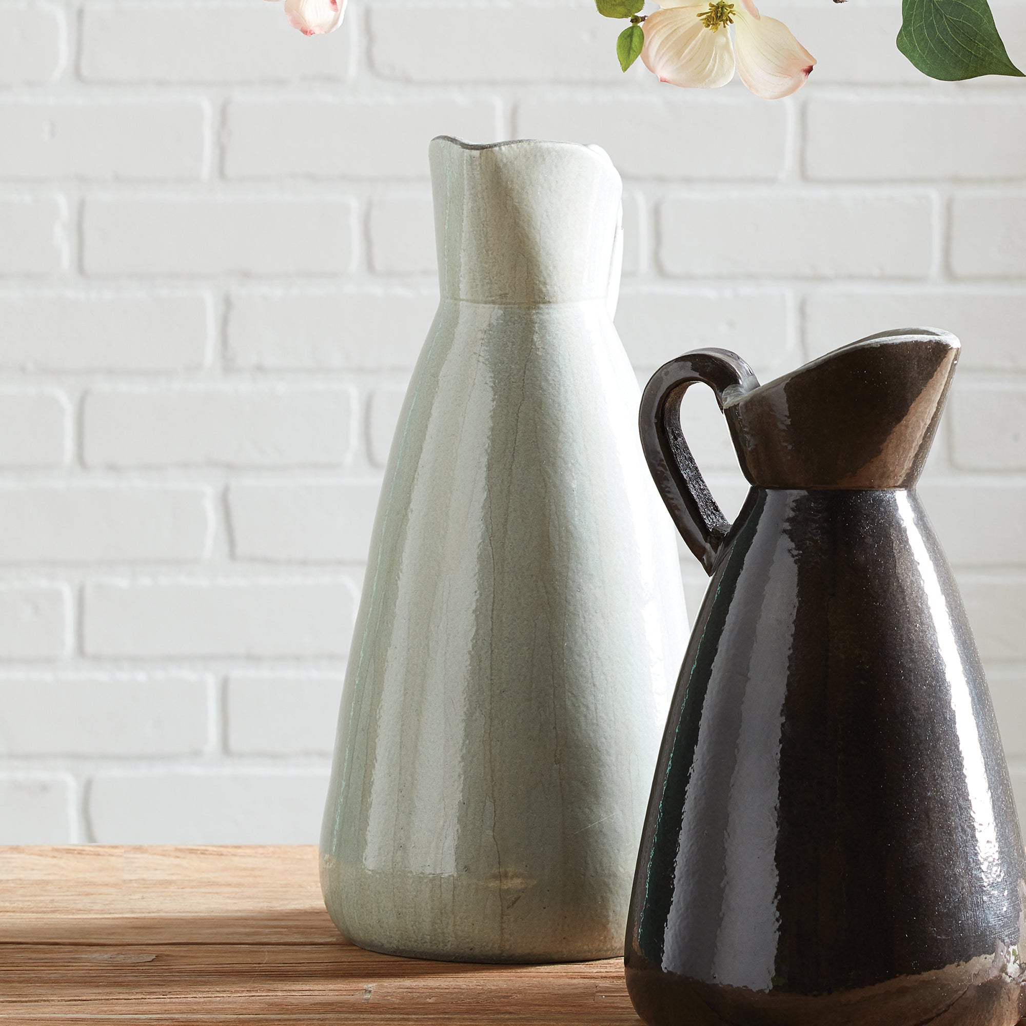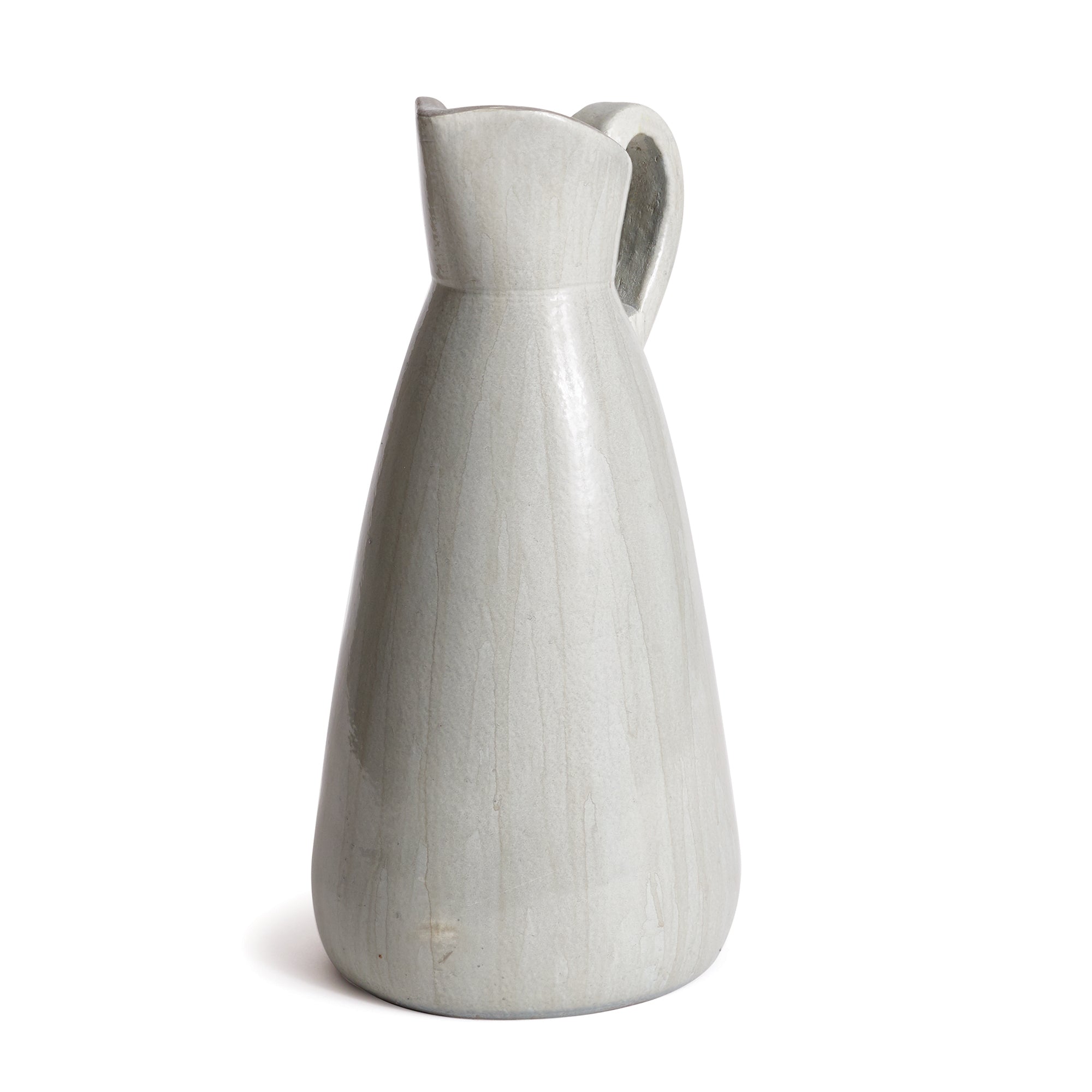 This is one in a series of vintage-inspired neutral milk jugs oozing character and charm. From the unique shape to the dripping, uneven glaze, they make a sophisticated vignette.