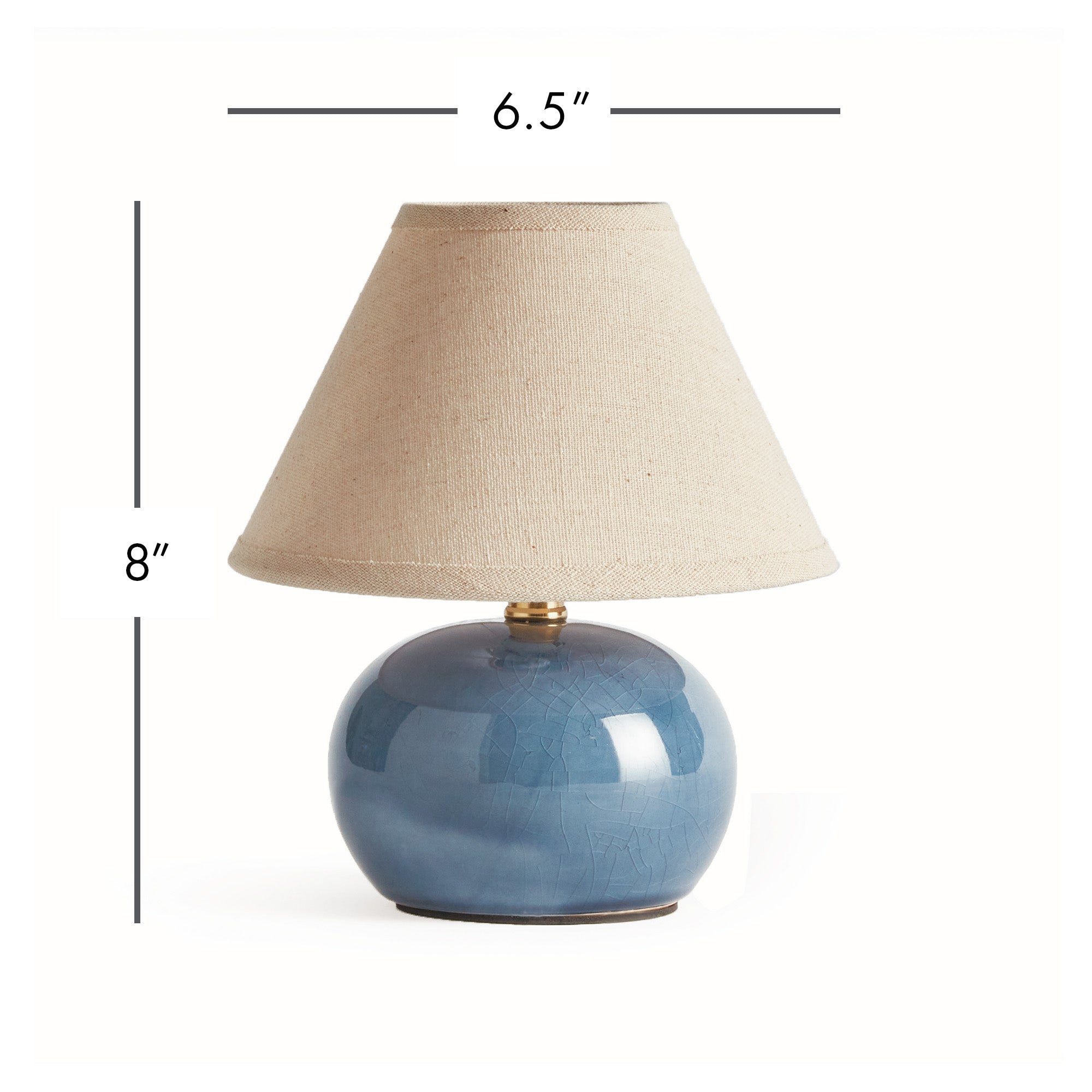 This sweet little blue glazed ceramic lamp is at home in any coastal setting. The textured cream shade and petite base make it a versatile piece. Great for kitchen counter, bookshelf or desk.