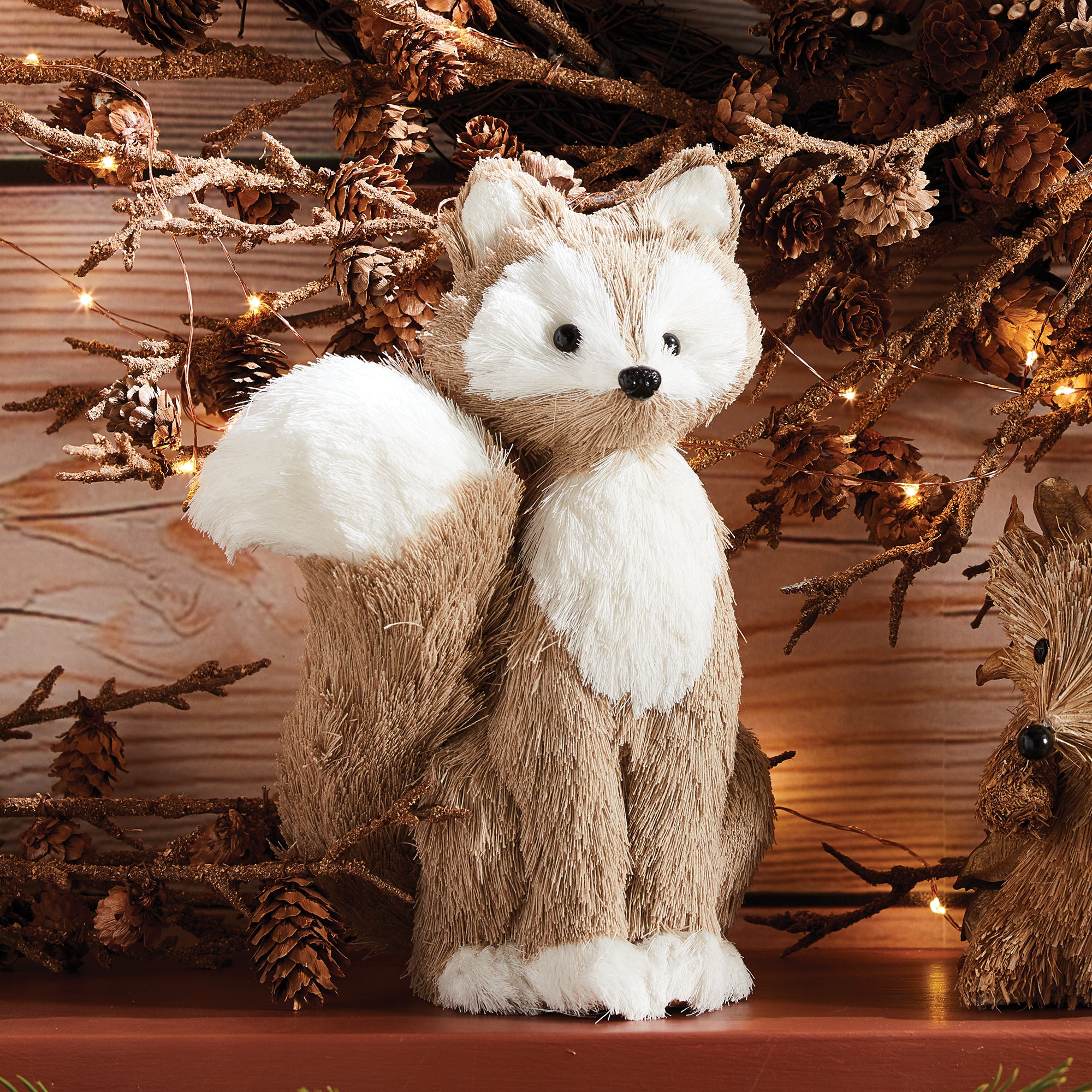 Made of all natural elements, this sisal fox is a tribute to the great outdoors. A fitting holiday accent for cabin or lakehouse.