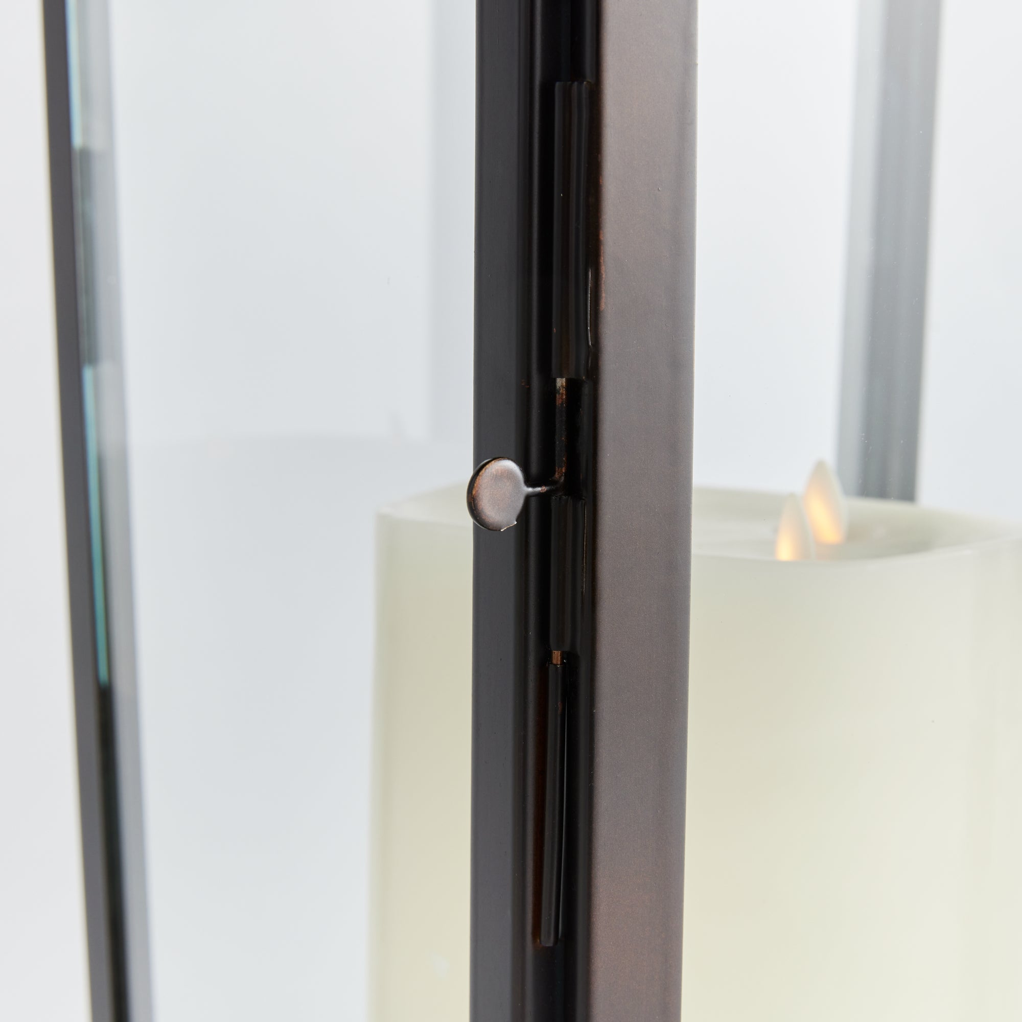 Scaled to wow, this outdoor lantern is fitted with round, flattened moveable handles. Powder-coated & ready for the outdoors, it makes a statement in any environment.