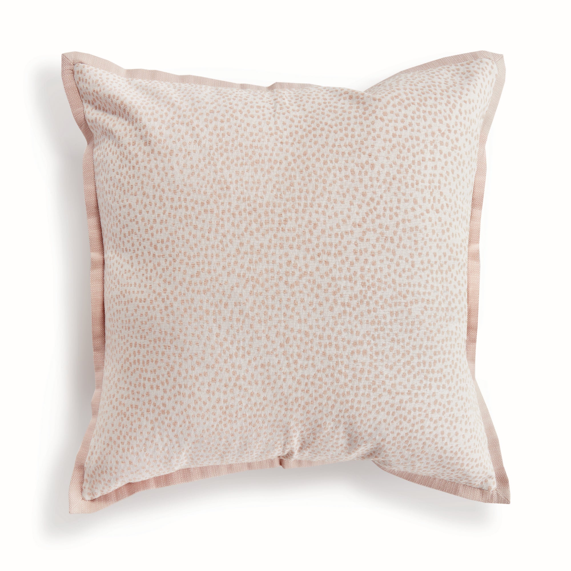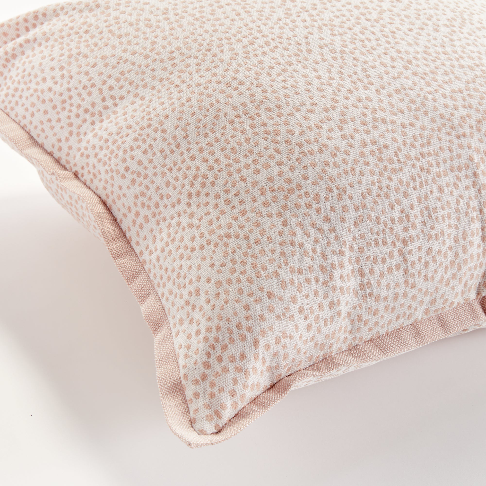The indoor pillow that lives beautifully outdoors. Enjoy the upscale luxury and durability of Jacquard. With a woven blush and white pattern, it plays well with any palette. This pillow is weather resistant and responsibly made. Filled with 100% recycled fibers.