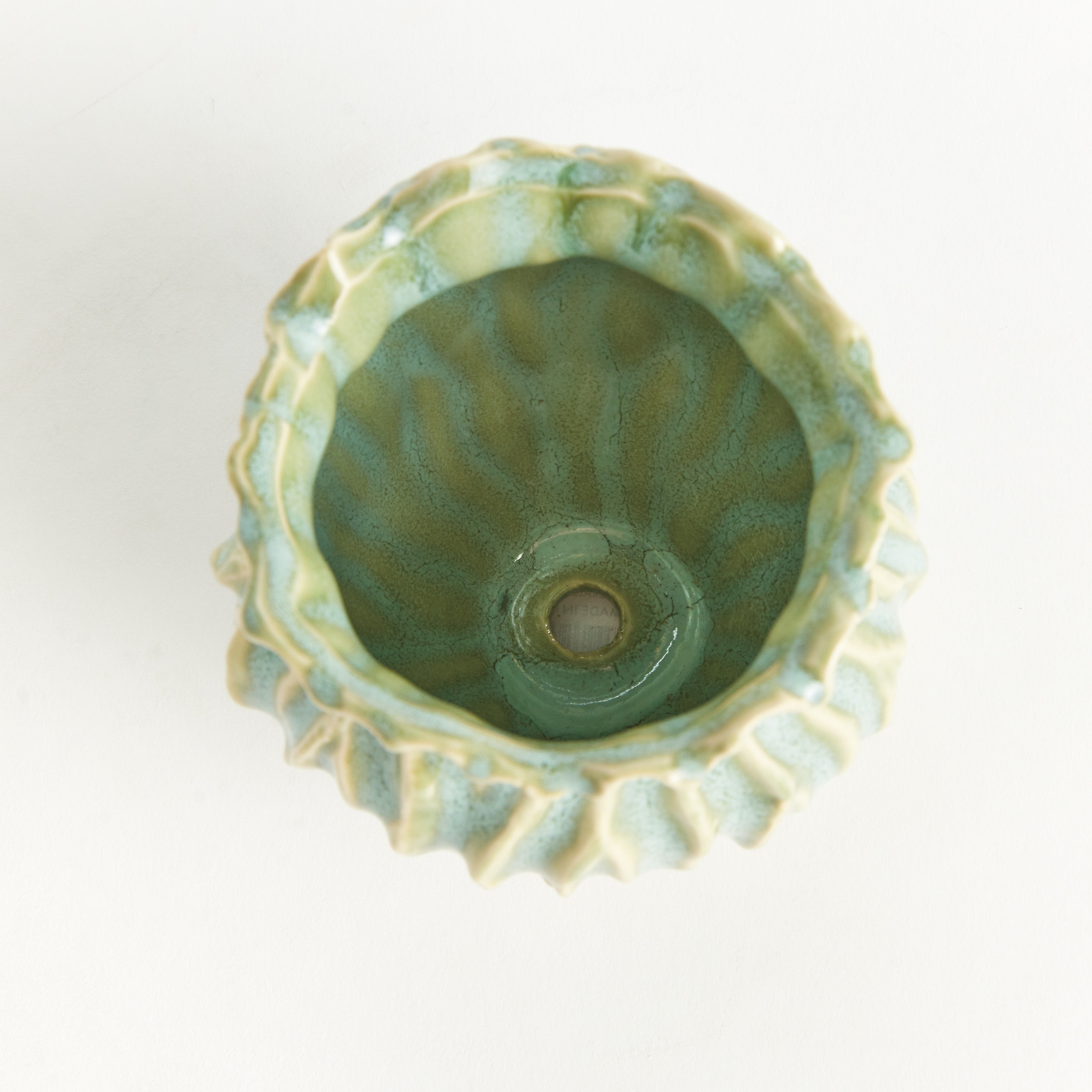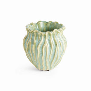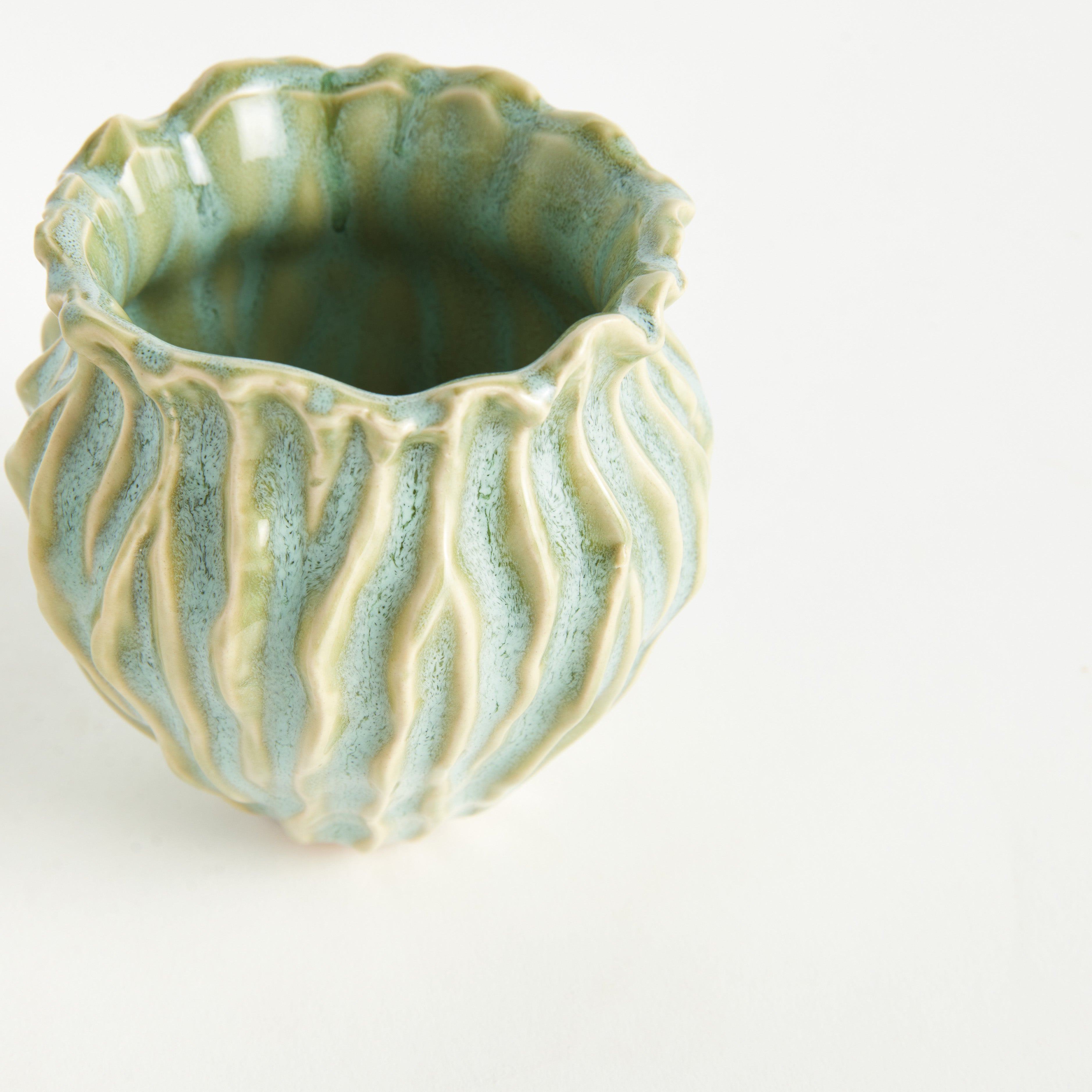 With a sculpted body and thickly-applied reactive glaze, this sculptural pot is a work of art. The hand-finished details give it an artisan's touch. Add a few faux stems or display as is. Simply gorgeous.