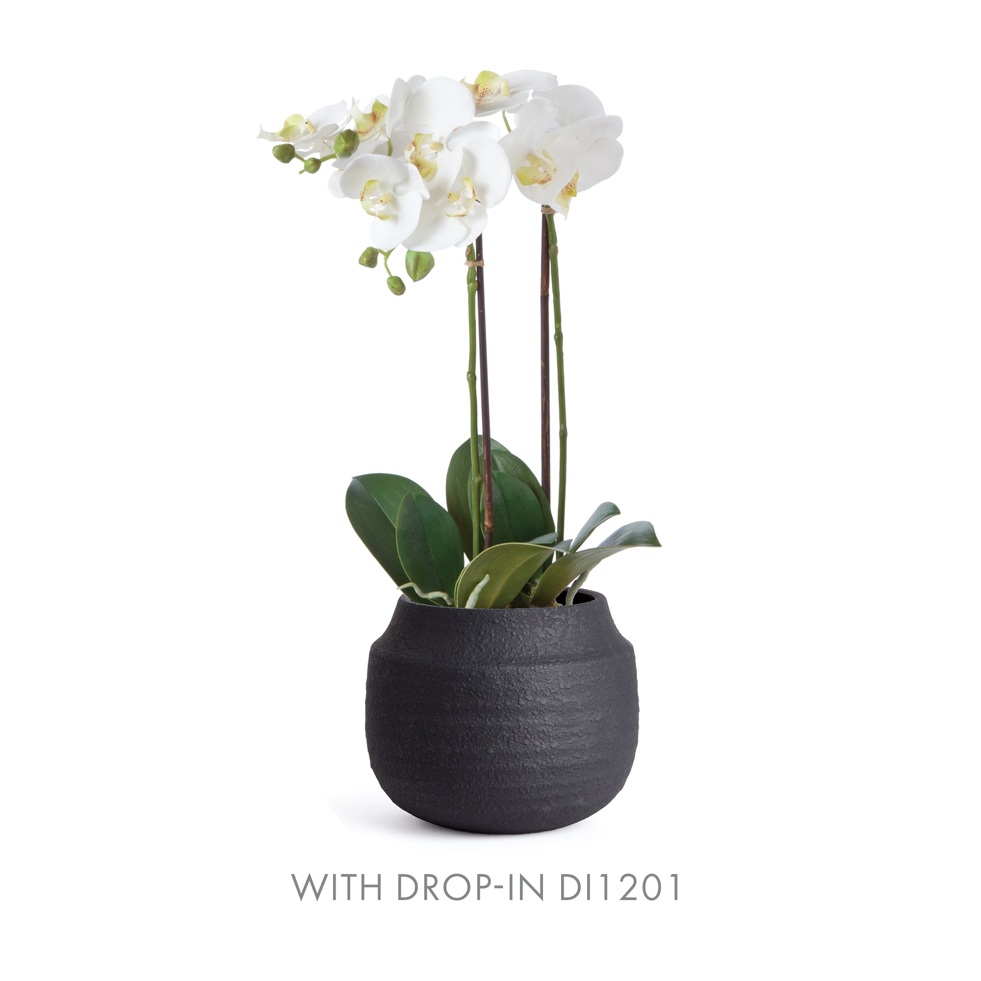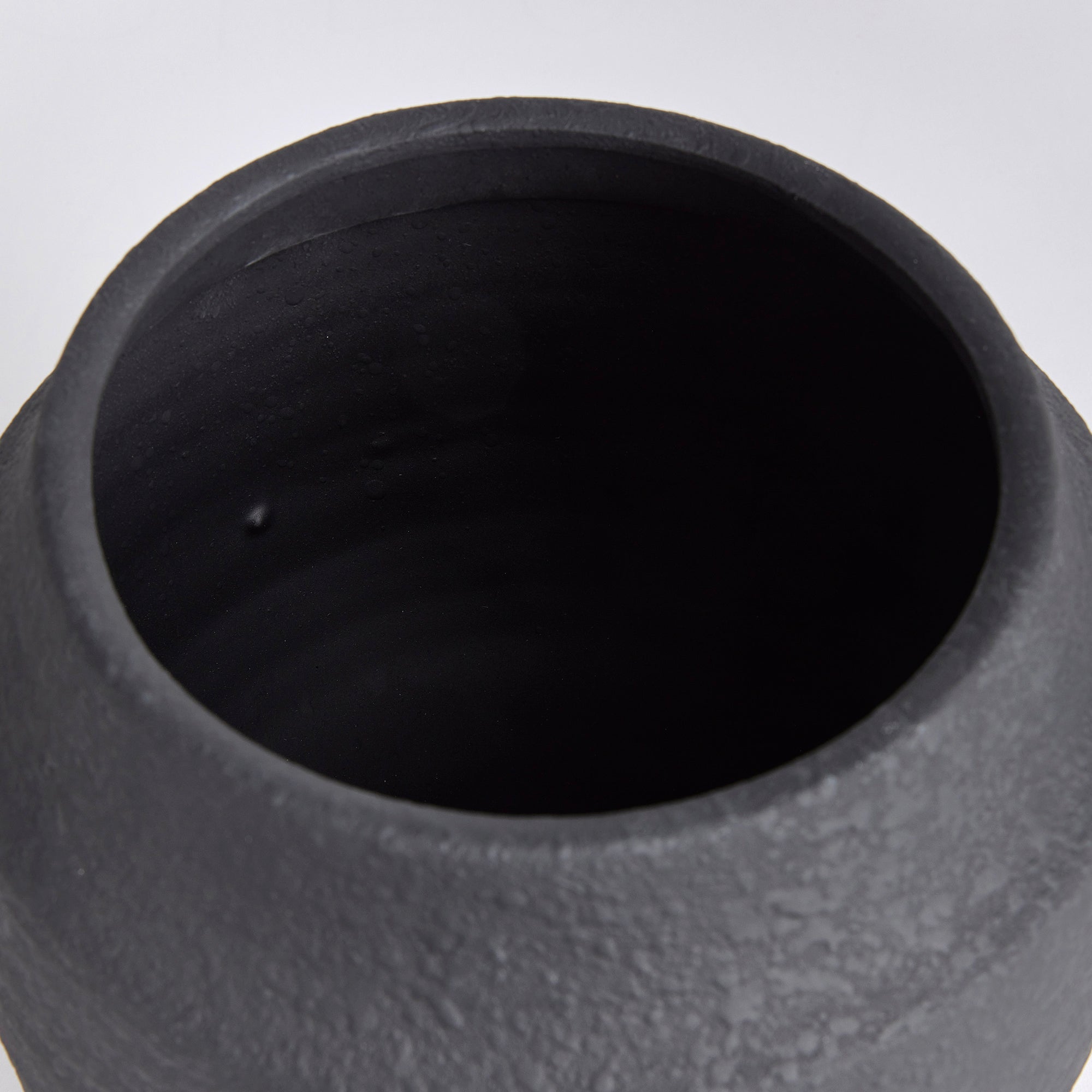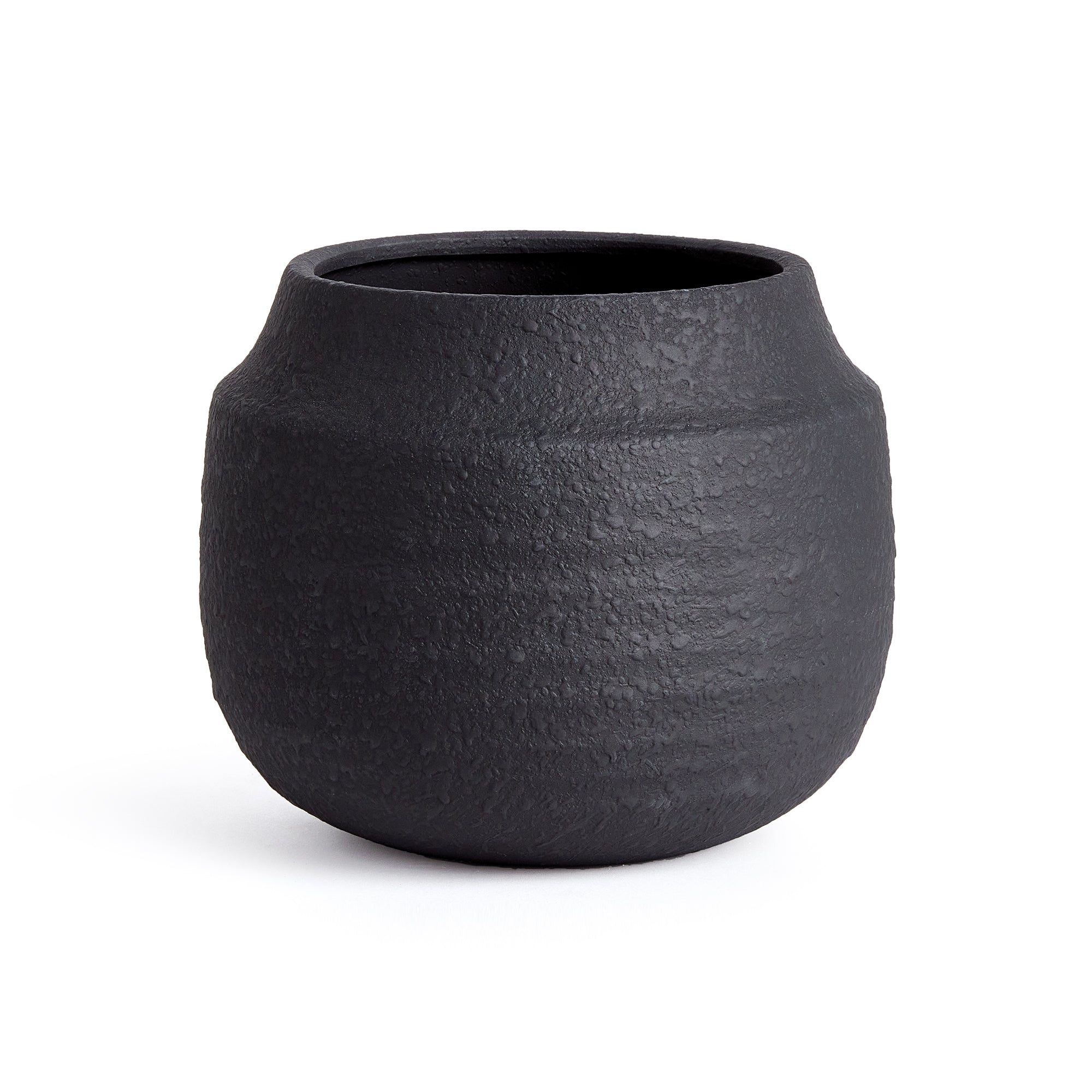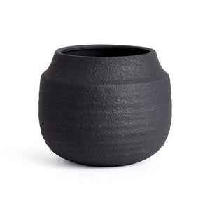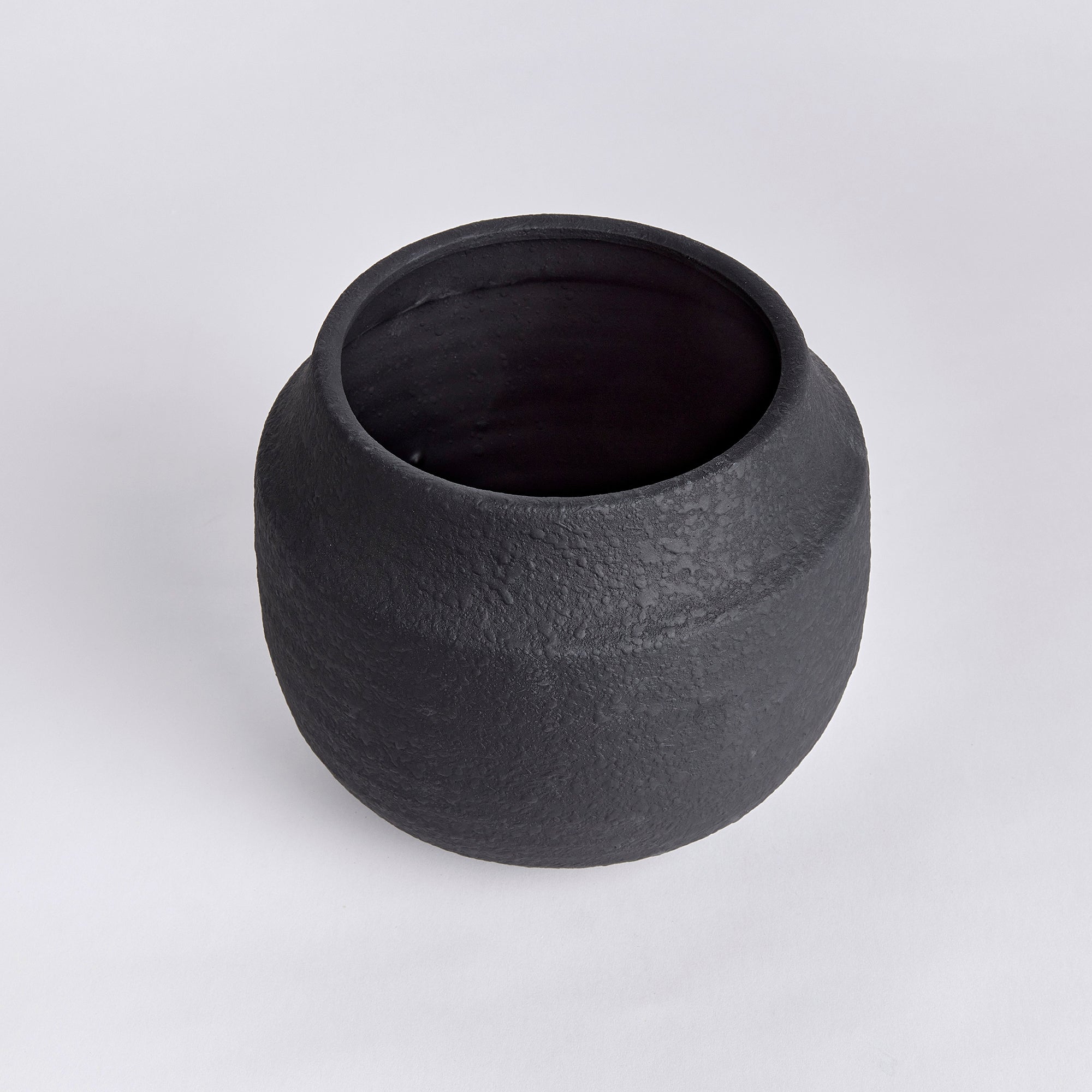 Simple in form with a modern aesthetic, this cachepot is the definition of less is more. Finished in a black matte glaze, it brings a calm, tranquil feel to any modern space. Pair it with a faux lush greenery drop-in or display as is for a clean look.