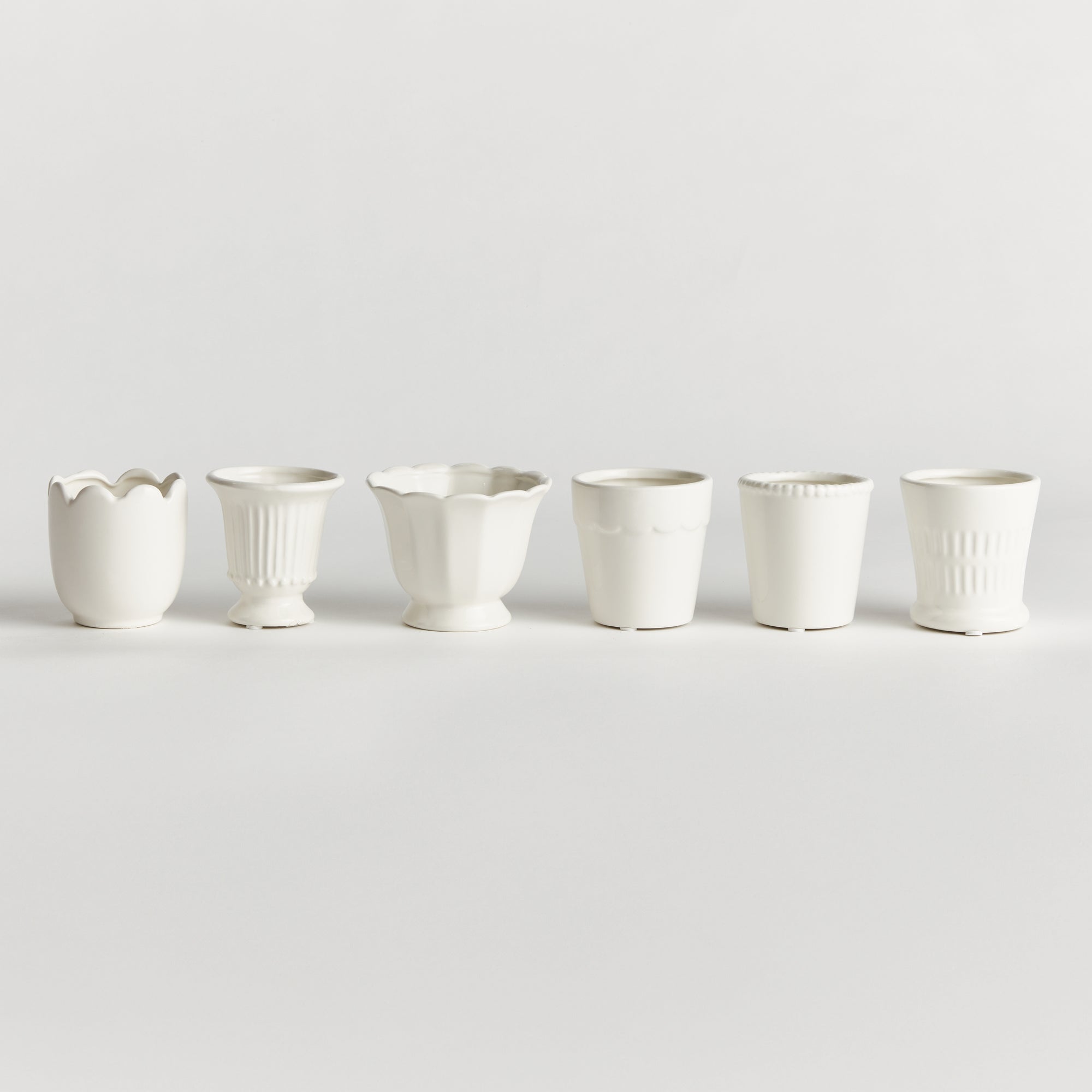 Interior designers are always on the hunt for that tried & true accent to enhance their well-appointed space. This sweet assortment of little white cachepots are designed in traditional forms. A darling gift for any lover of the classics.