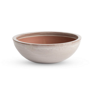 This durable earthenware low bowl is designed for the outdoors, but is equally as beautiful indoors. From the depth of the reactive glaze to the contemporary silhouette, a real find for the modern garden lover.