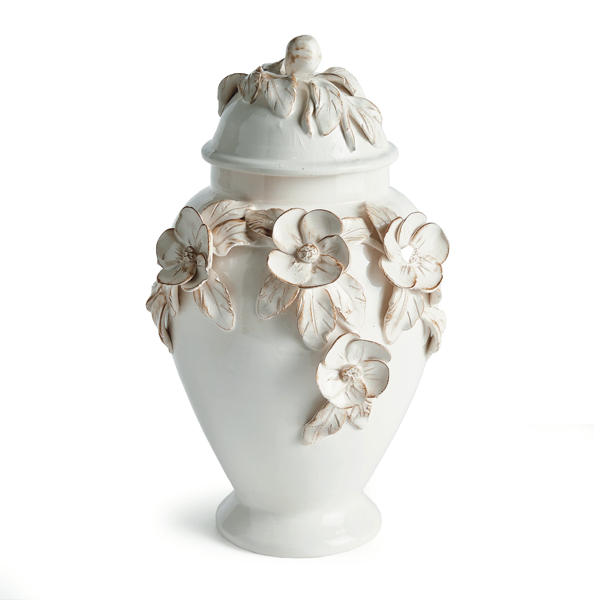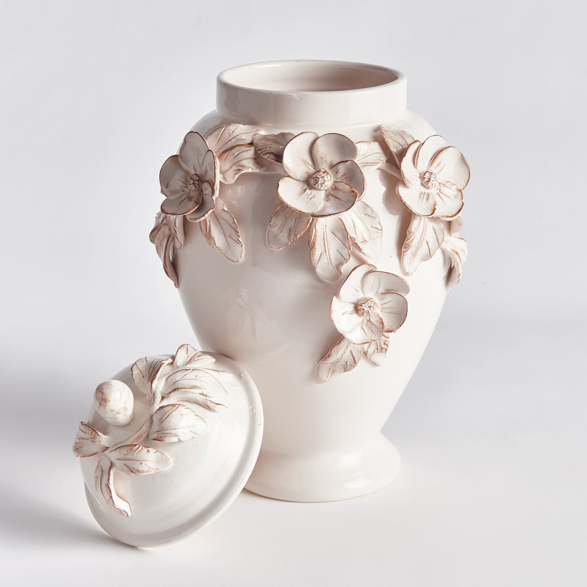 Each and every distinctive floral detail of the Fiori Ginger Jar is handmade, and hand-applied by Italian artisans in Tuscany. A classic design in a soft white glaze. With an extraordinary craftsmanship passed down through generations, each piece is a true original. In grand scale, a dynamic centerpiece for feature table, kitchen island or mantel.