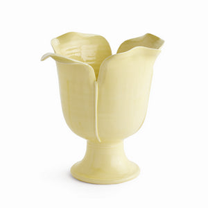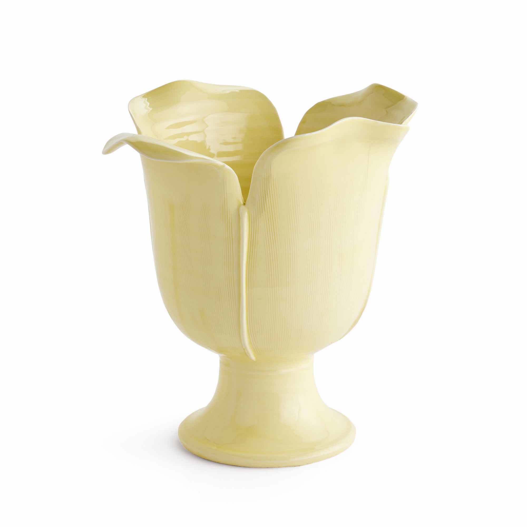 Each and every distinctive petal of the Petalo Vase is handmade, and hand-applied by Italian artisans in Tuscany, Italy. A subtle, open design in a yellow ice glaze. With a classic Italian craftsmanship passed down through generations, each piece is a true original. In grand scale, a dynamic centerpiece for feature table, kitchen island or mantel.