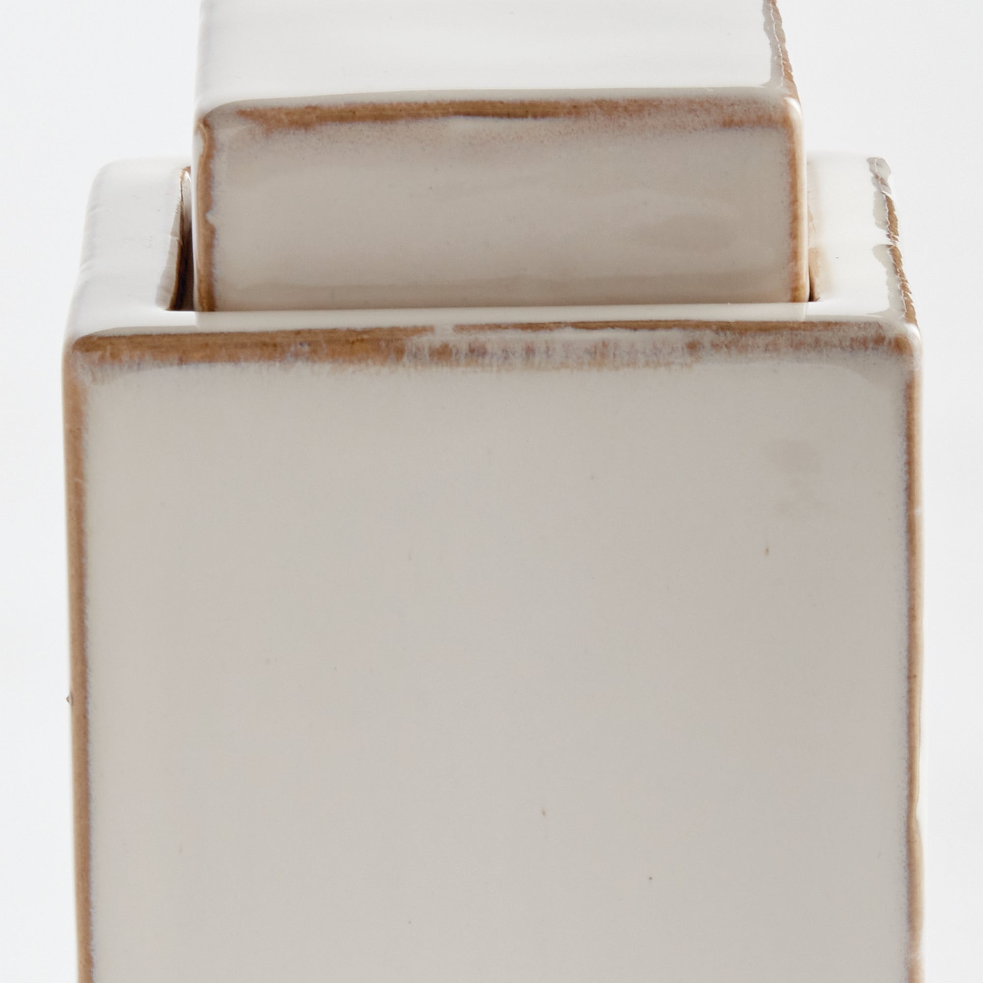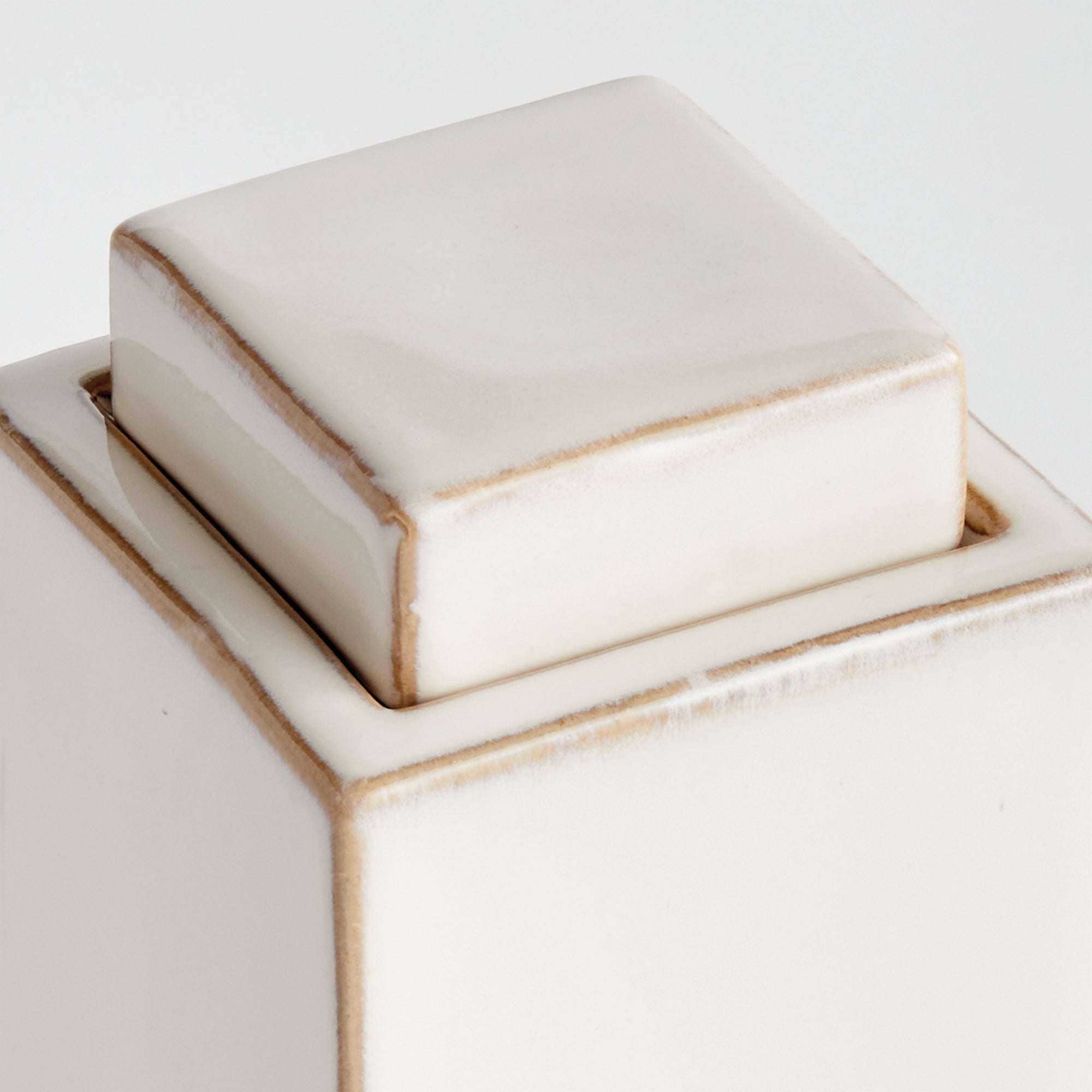 With its sleek lines, contemporary design and reactive glaze, this lidded jar is perfect for both modern and traditional settings. The fitted decorative top ensures secure storage, making it not just a work of art, but also a practical addition to your home. Elevate your decor with this statement piece and enjoy the timelessness of artisanal pottery.