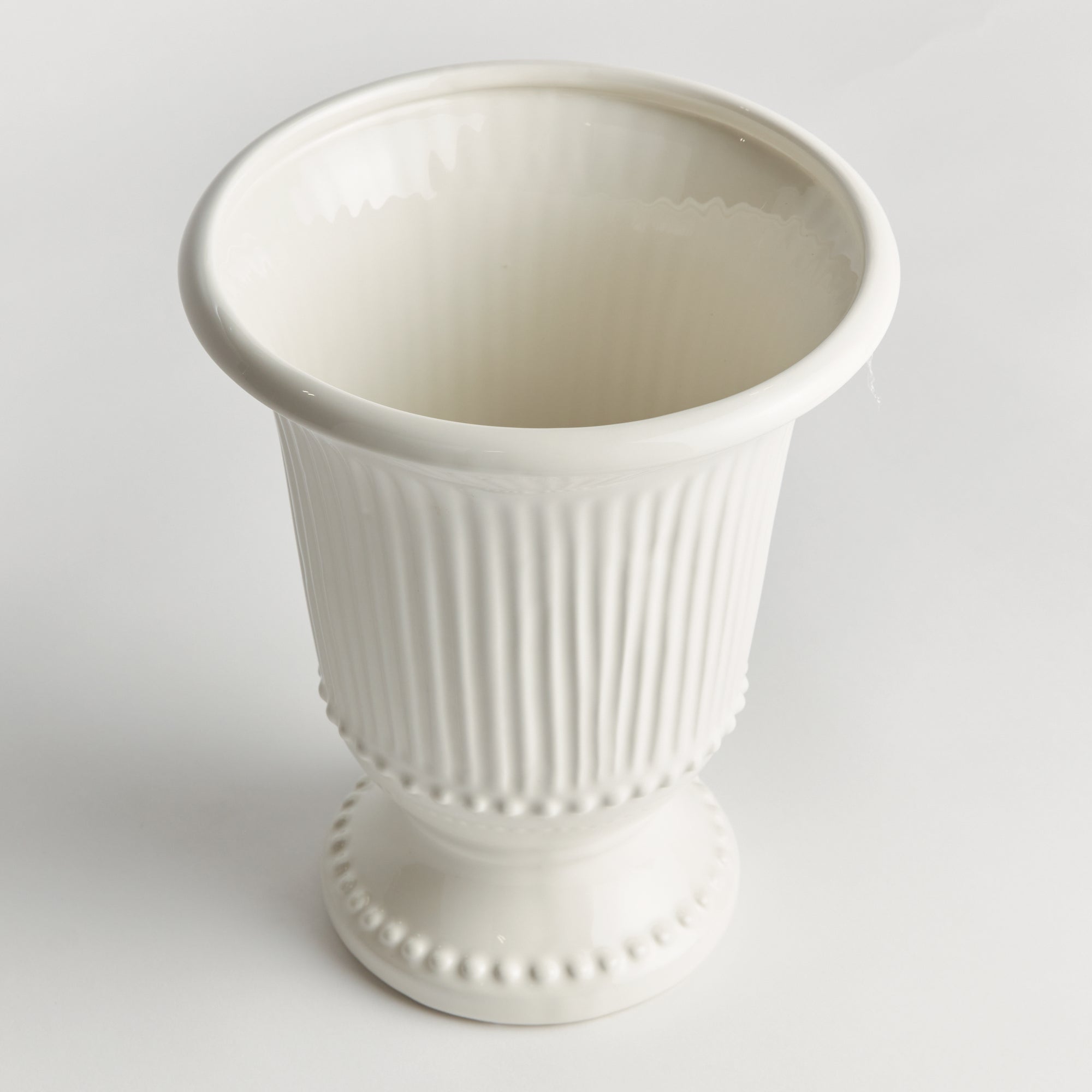 Decorative interior use only. Do not use with water or plant directly into. Use only with inner pot or liner. Do not use harsh chemicals.