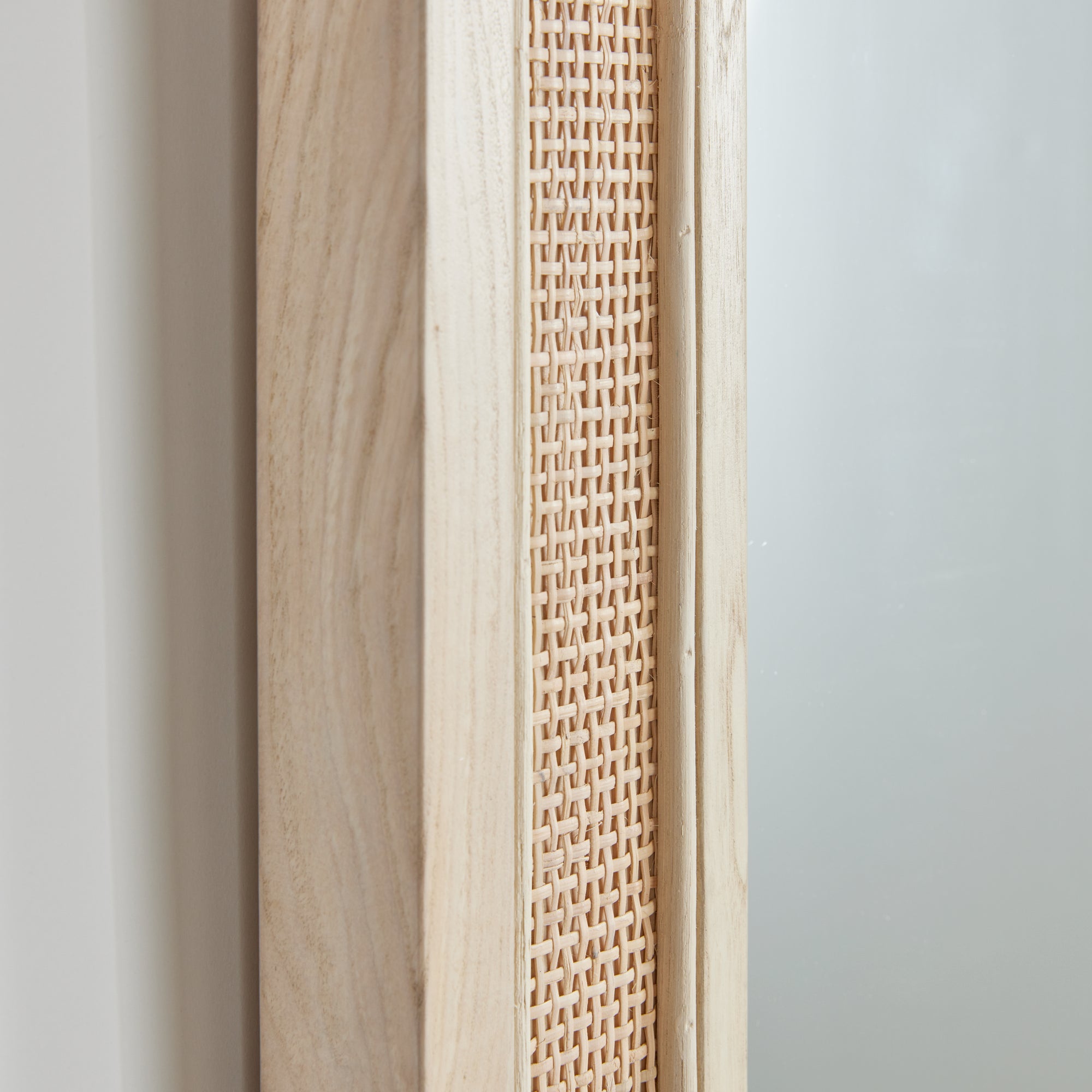 Measuring over five feet high, this mirror is built for drama. With a woven caning inset over sustainably harvested lightweight sungkai wood backing, it is lighter than it looks. A gorgeous wall mirror for entry, powder room or foyer.