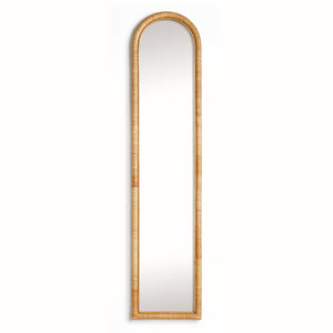 This rattan wrapped floor mirror with an arch design is a casual accent for the home or office. A dynamic look for entry, hallway or even primary closet.