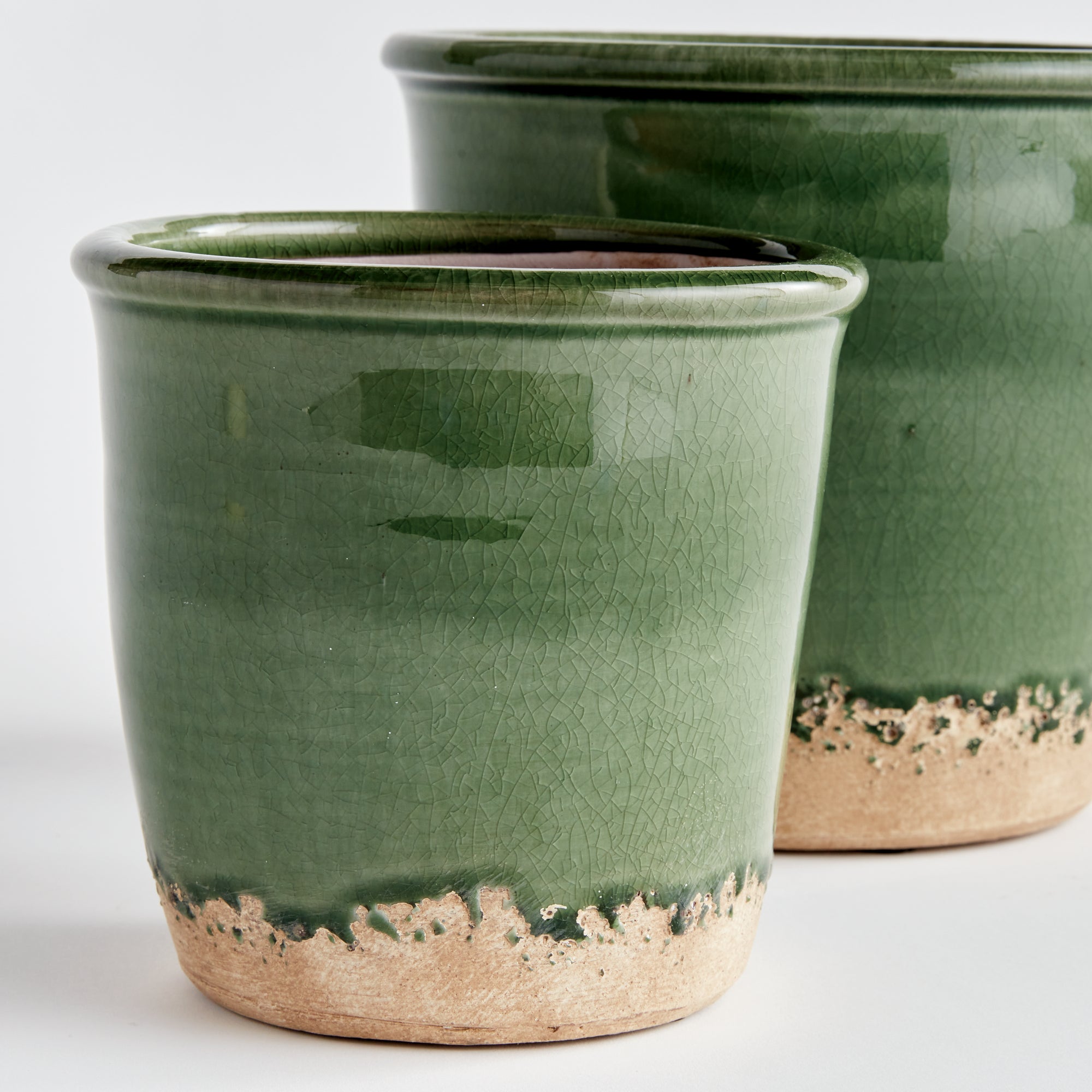 Inspired by traditional ceramics of southern Europe, this set of pots really bring the charm. Hand-thrown with a subtle crackled glaze and raw terracotta base, they are a rich look for your favorite herbs or florals.