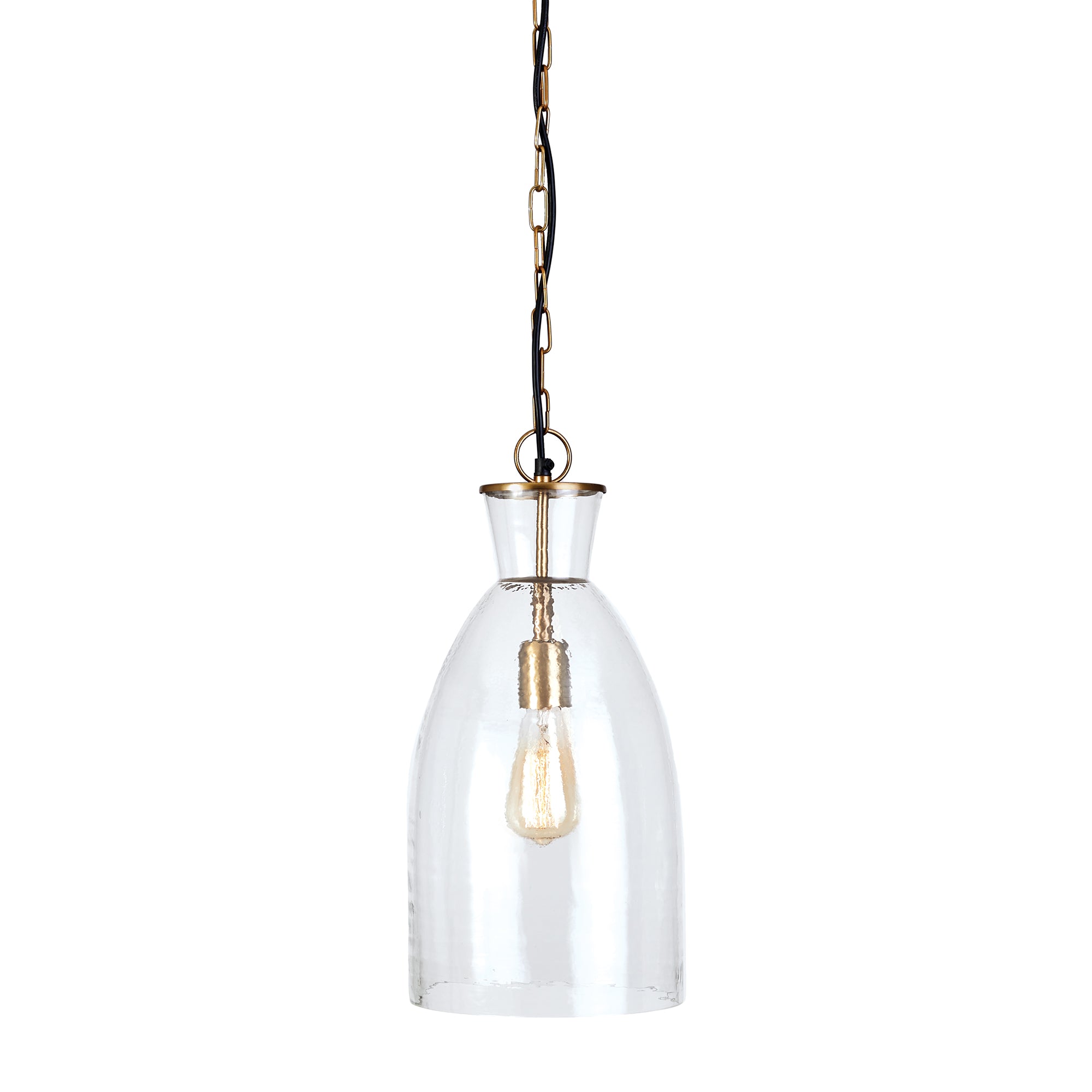 In a classic mix of warm brass and seeded glass, the Belle pendant is a traditional fixture. Over an island, in an entry or foyer, a solid choice.