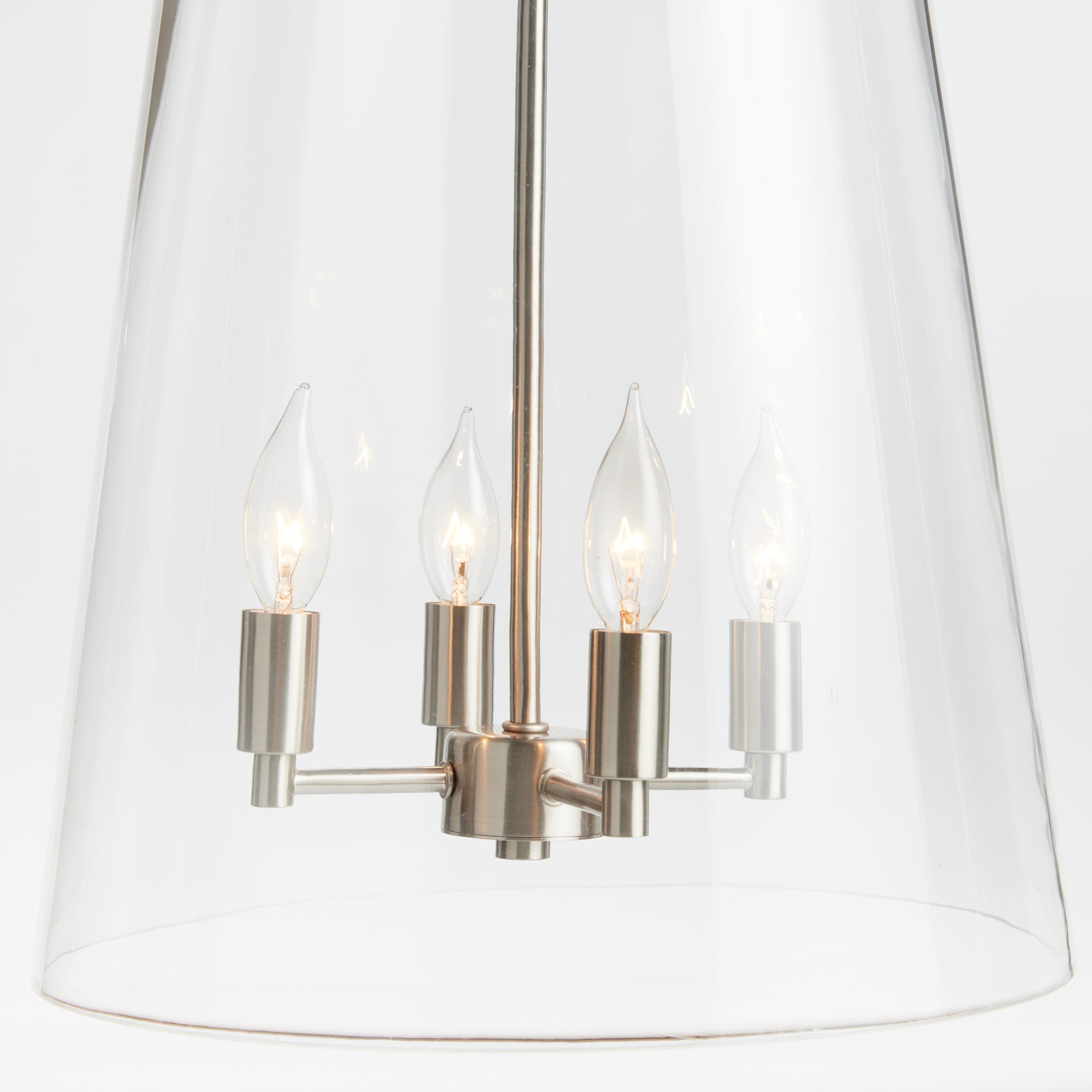 Made of a custom glass mold, this pendant is well proportioned. In a clever design decision, the top silver metal detail goes through the glass, creating a unique look.