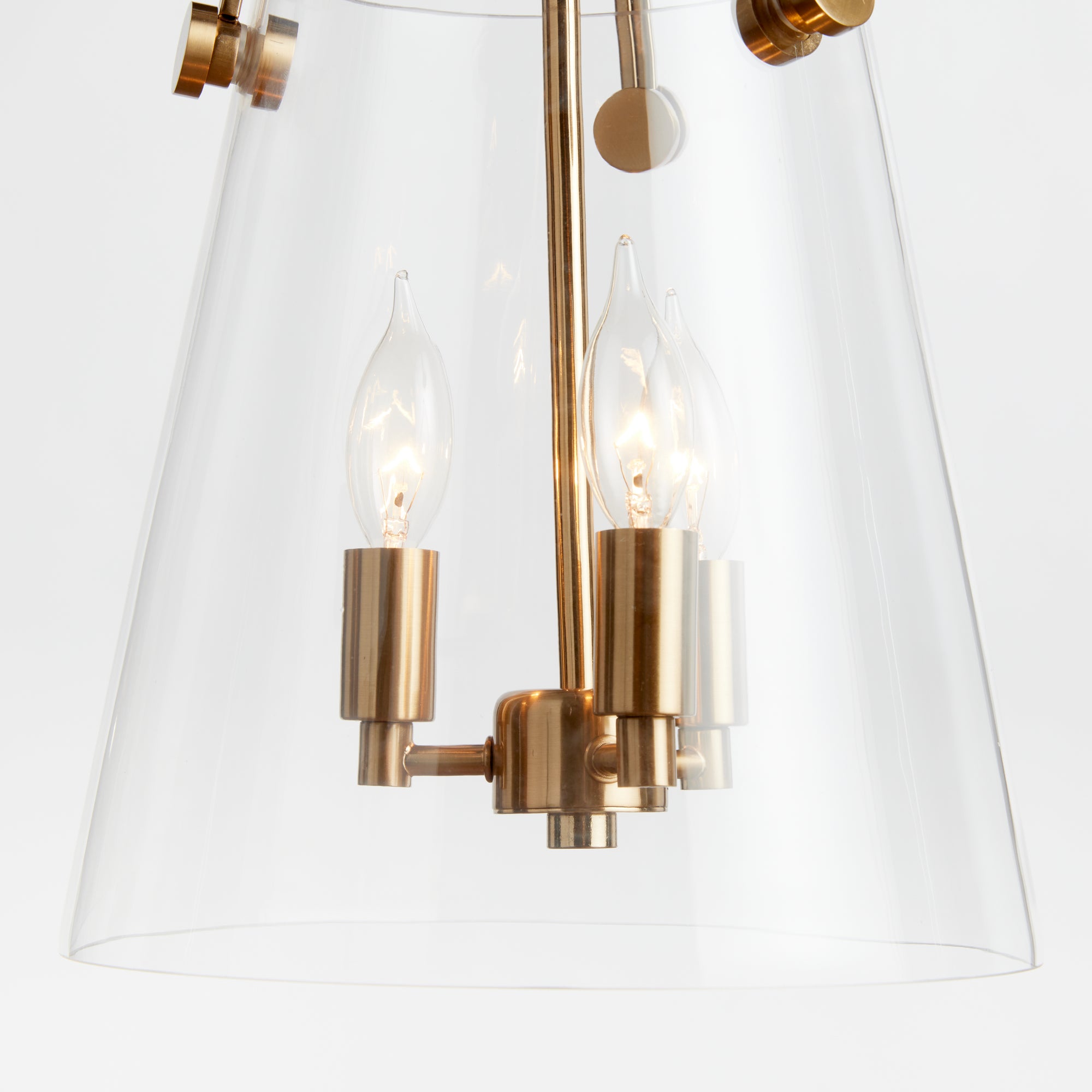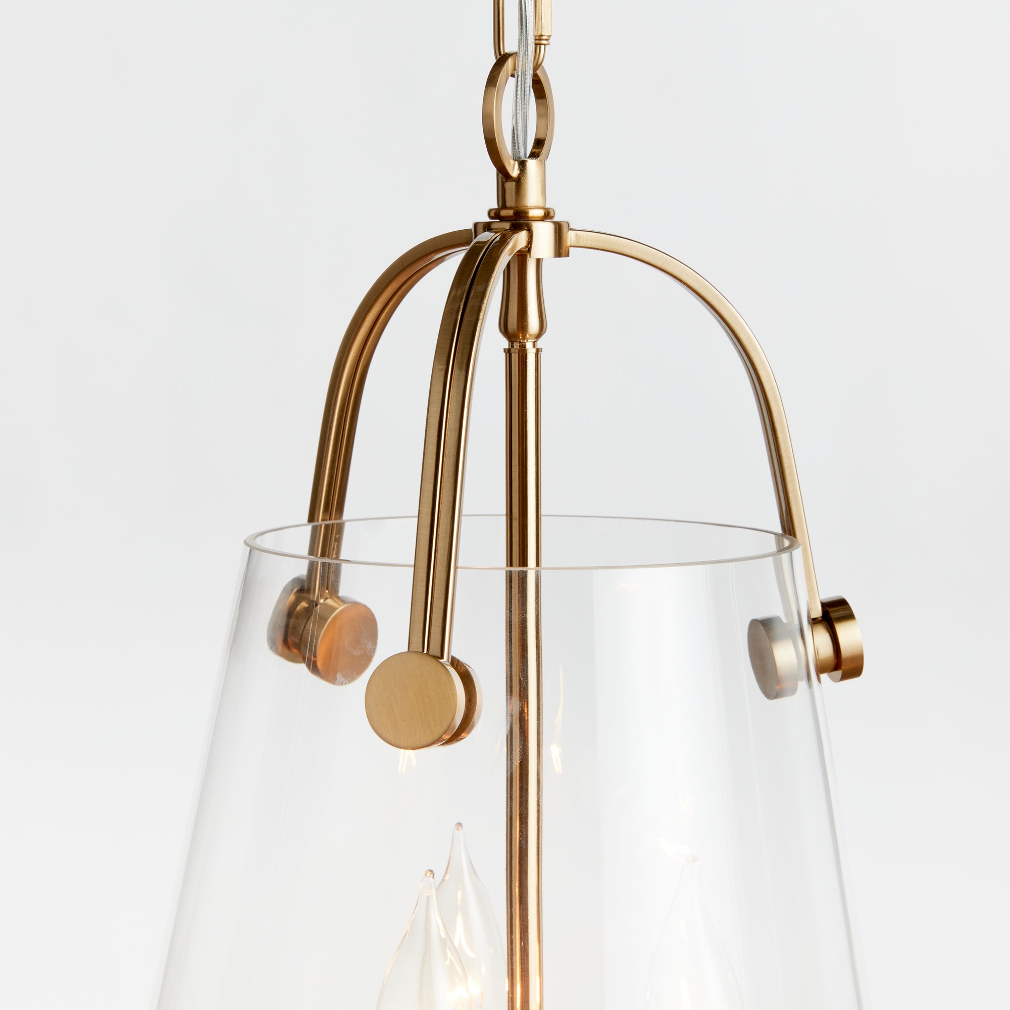 Made of a custom glass mold, this pendant is well proportioned. In a clever design decision, the top gold metal detail goes through the glass, creating a unique look.