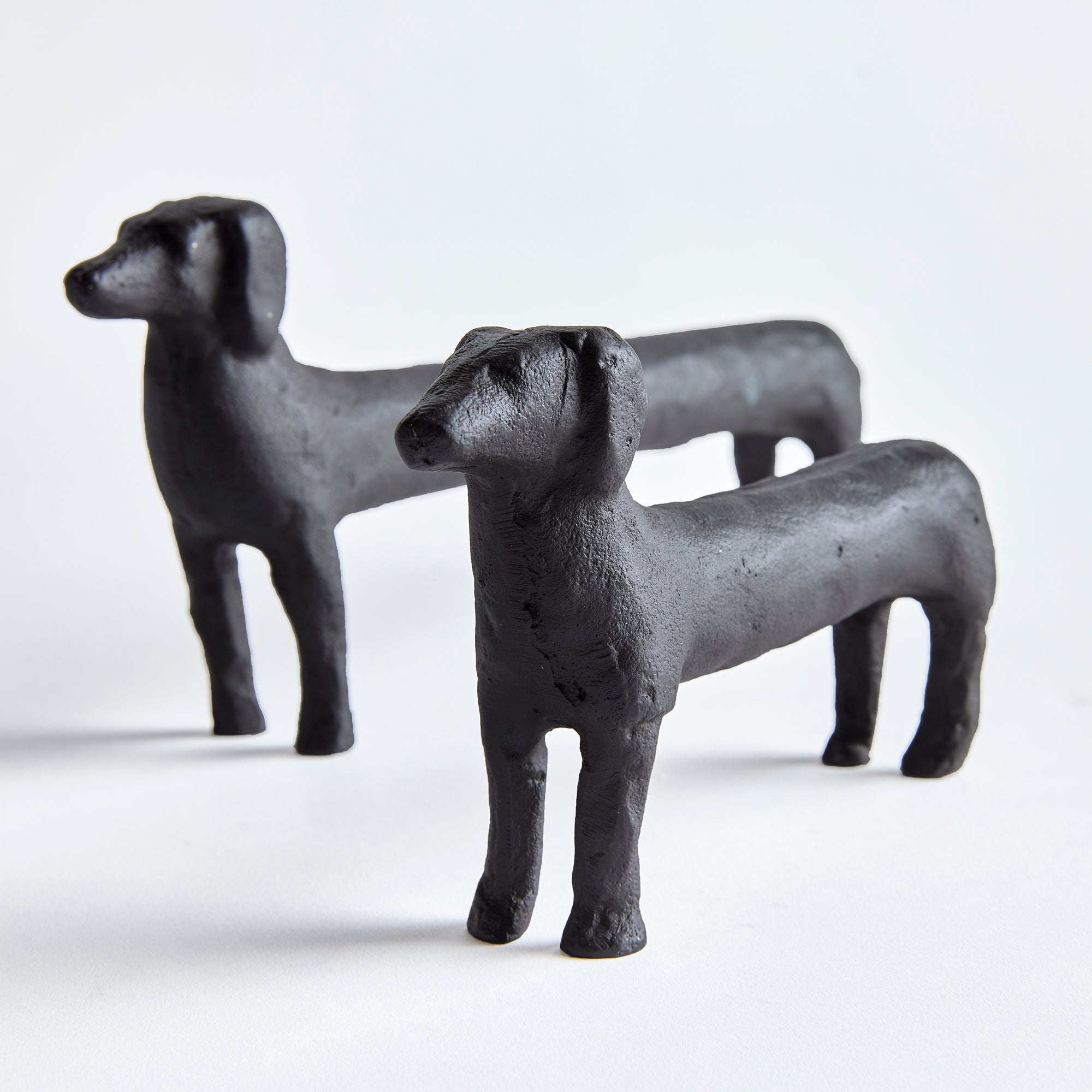 Made of a heavy cast aluminum, this set of regal dachshund sculptures are worthy of a prime bookshelf spot. With abstract, exaggerated features, a darling addition to side table or ottoman.