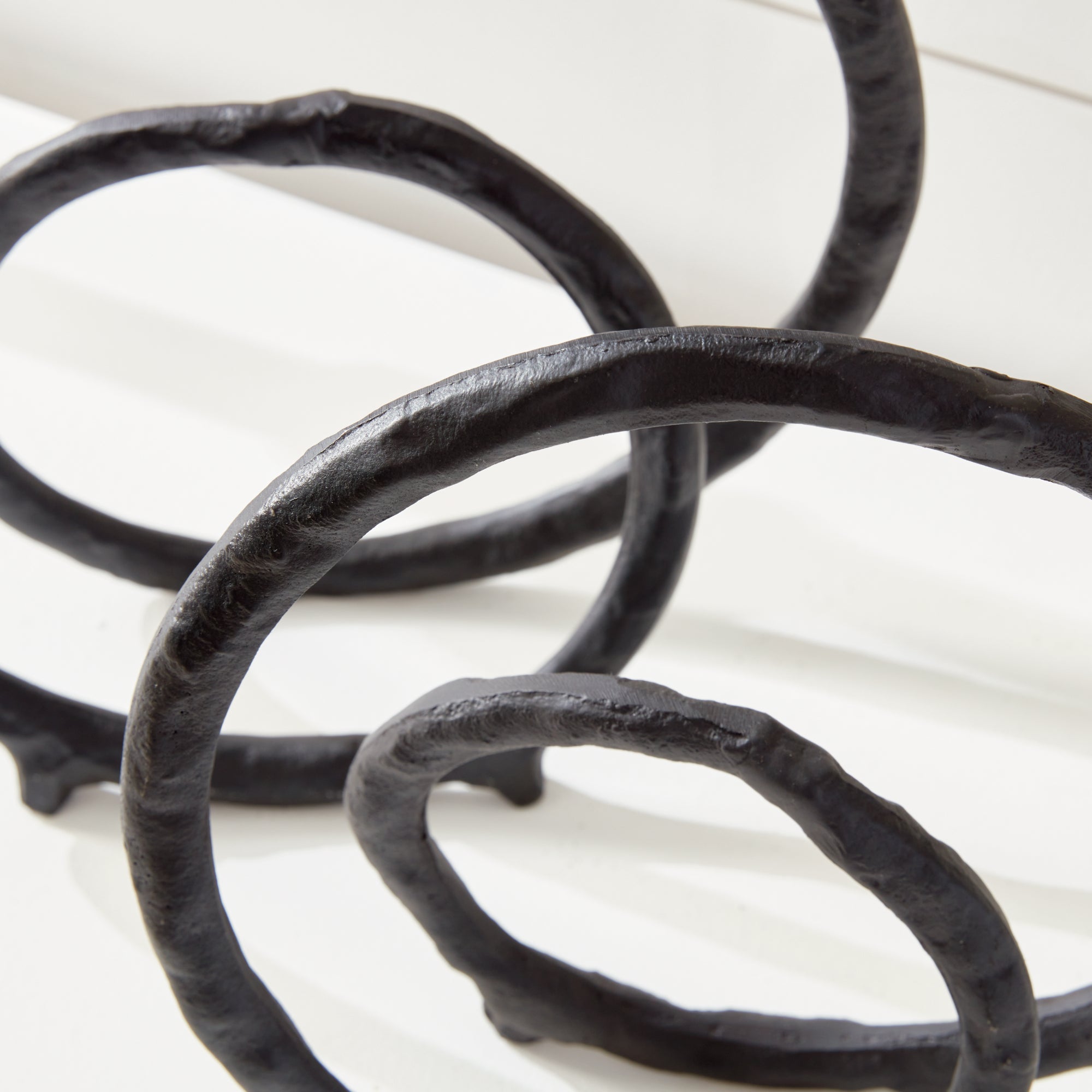 In a dark bronze finish, this set of two coordinating sculptures add a fresh, modern look. Scaled to impress, they are a sturdy design with a contemporary influence. Place within a bookshelf, console or on the mantel.