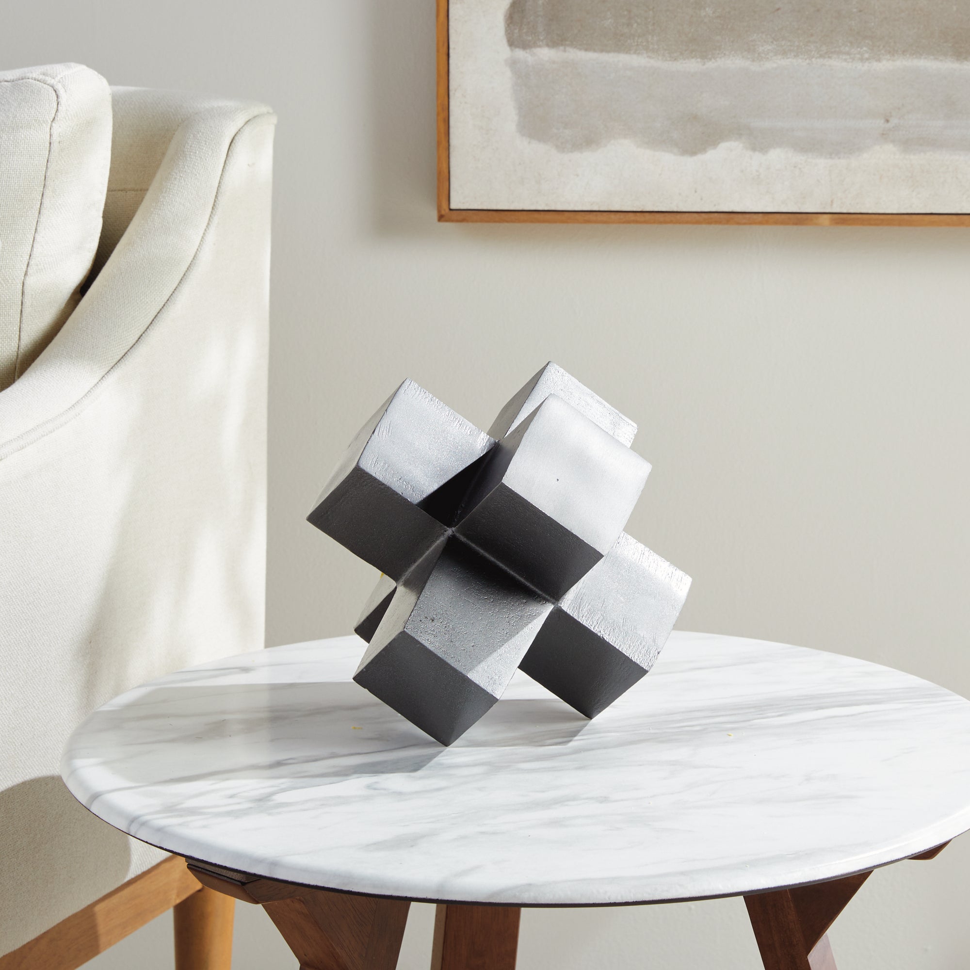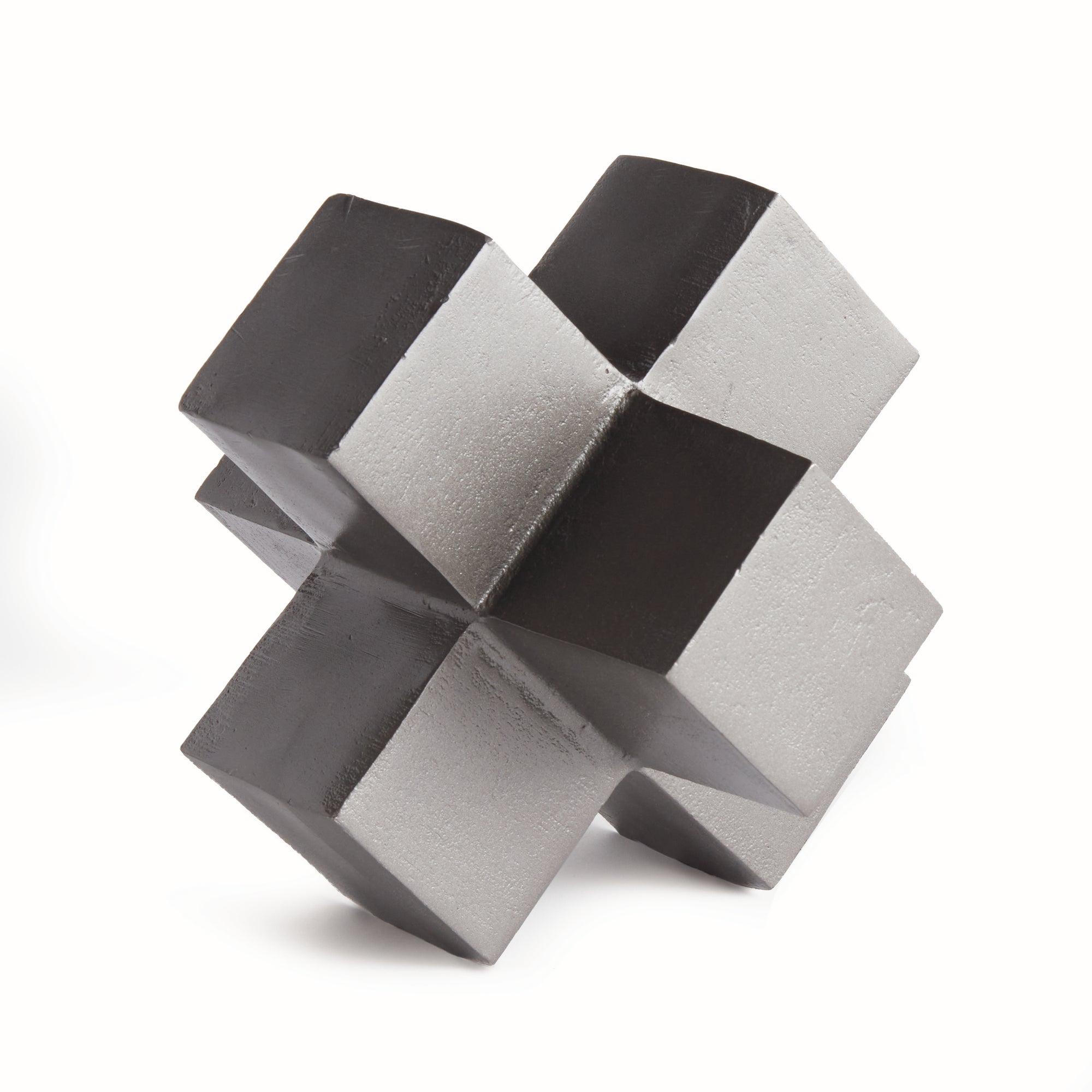 A geometric marvel, this three-dimensional plus sign sculpture is a bold accent in a darkened silver finish. Place atop a stack of books or nestled in a bookshelf for a modern touch.